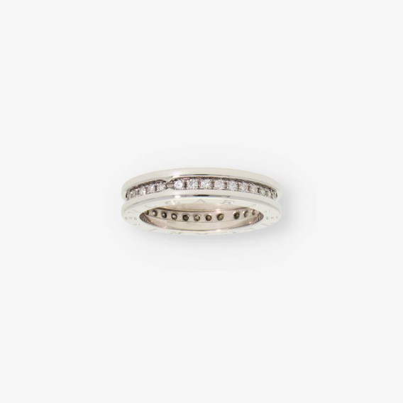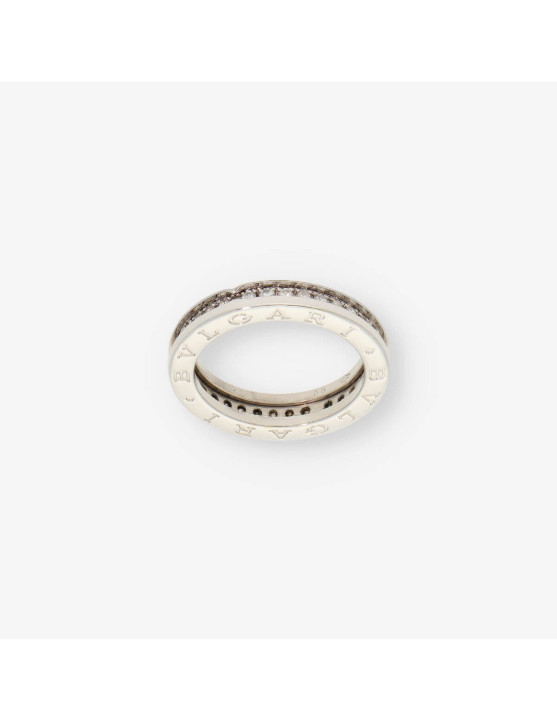 Precioso anillo Bulgari en oro blanco de primera ley de 1 banda con brillantes. Una pieza ideal para los amantes de la firma. Talla: 16 (56). Peso: 8.34gr.