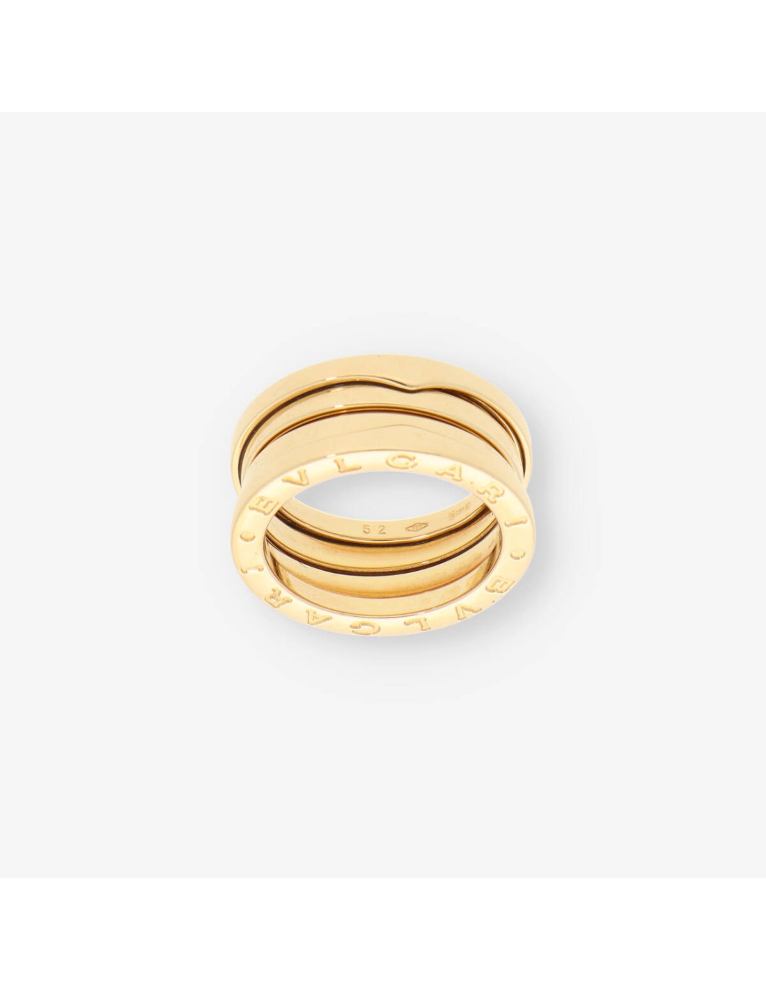 Precioso anillo Bulgari de segunda mano en oro amarillo de primera ley. Icónica pieza de tres bandas de la casa Bulgari. Un complemento indispensable para los amantes de la firma. Talla:  12(52). Peso: 9.76gr.