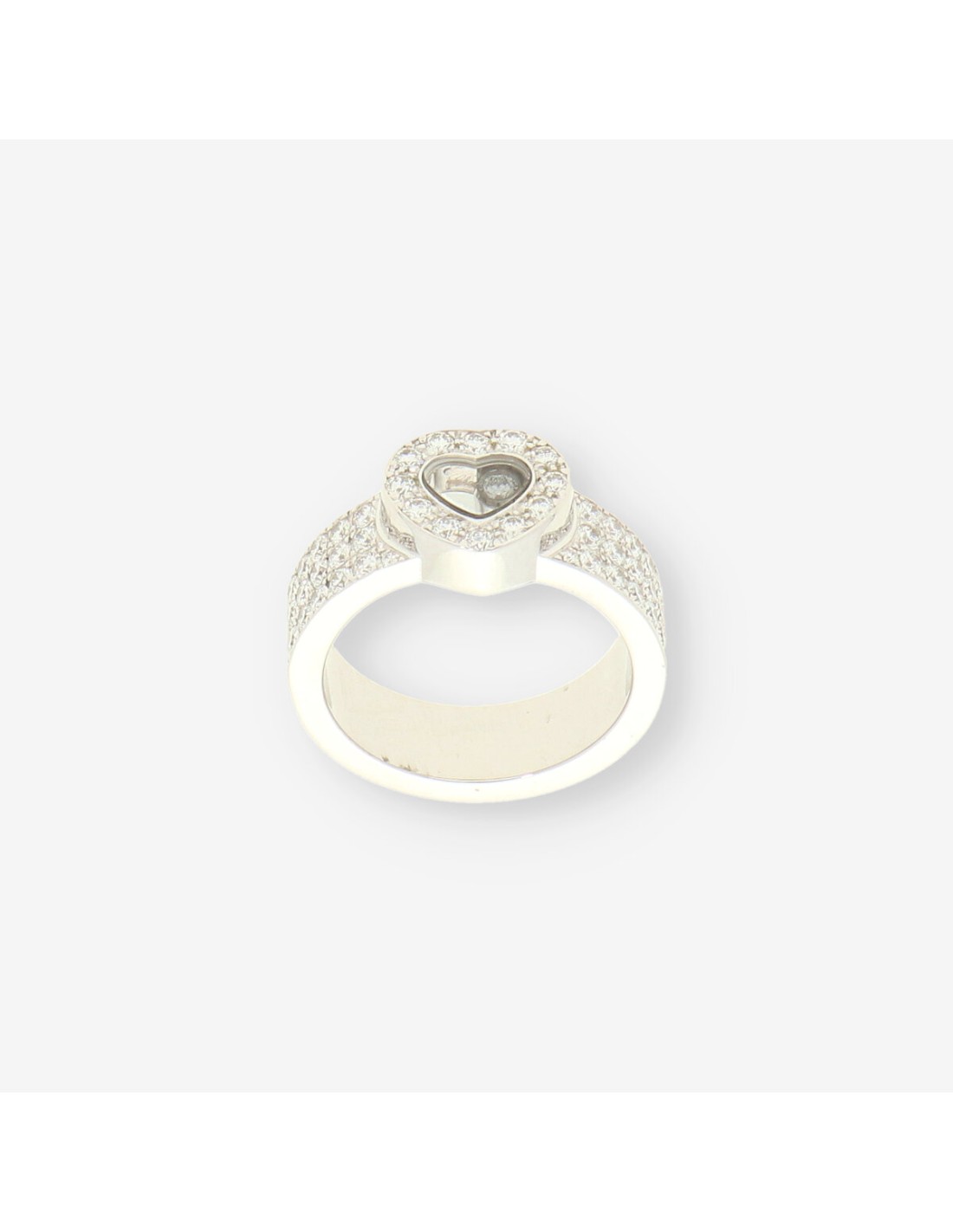 Anillo de segunda mano Chopard en oro blanco, con de la serie Happy Diamond con detalles que reflejan la elegancia característica de la marca. Una pieza exclusiva y sofisticada, ideal para quienes buscan combinar lujo y estilo en una joya atemporal. Perfecto para ocasiones especiales o para realzar tu colección personal. Talla 13. Peso: 11.94gr.