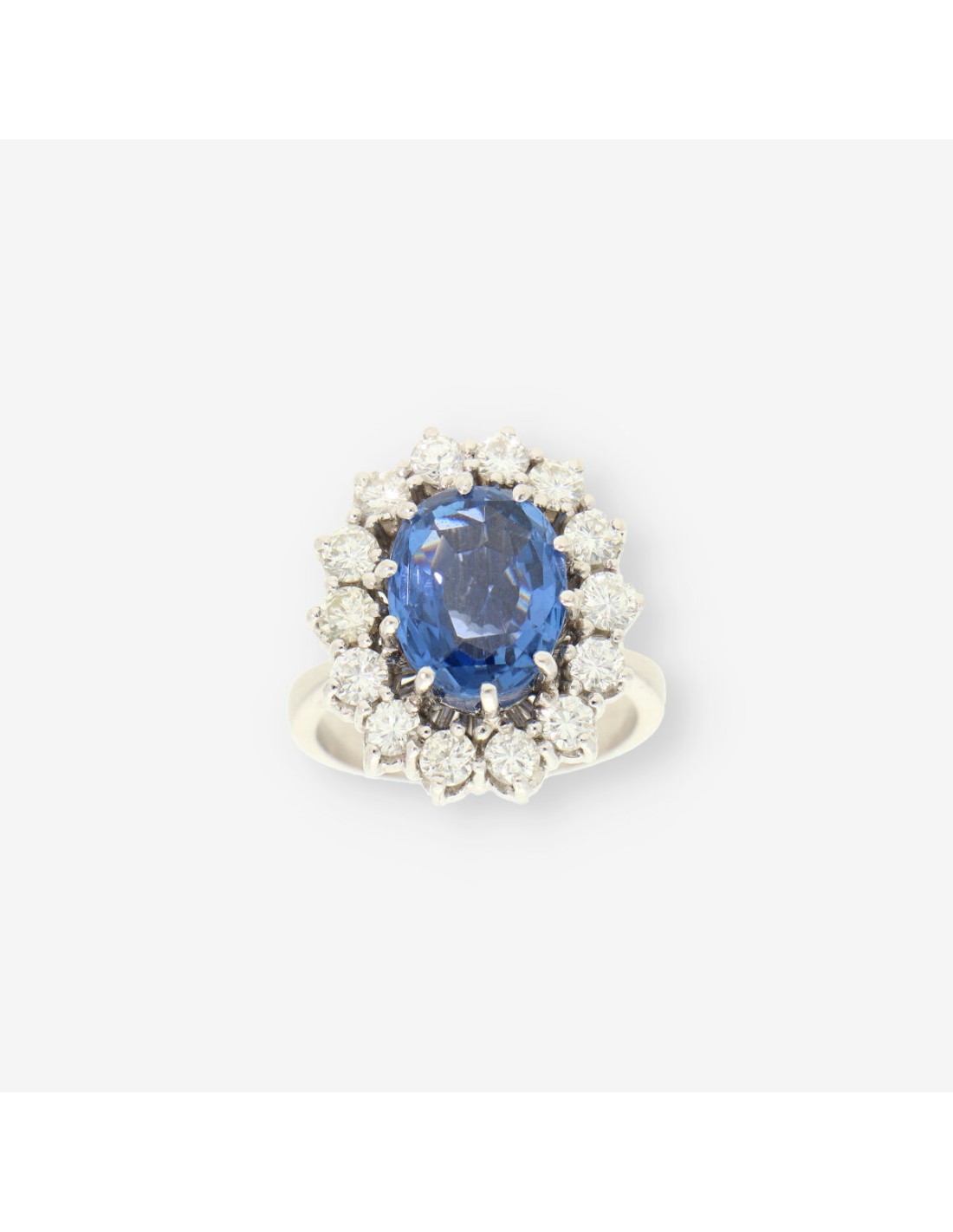 Anillo de Oro Blanco 18kt con Zafiro y Diamantes NUEVO