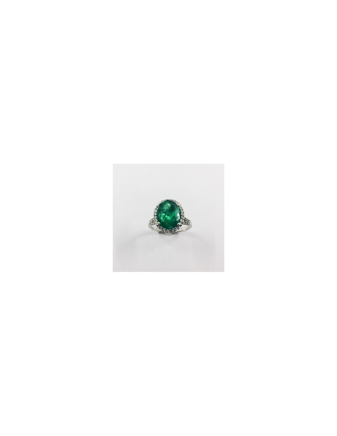 Anillo de segunda mano en oro blanco de 18 kt. con brillantes y esmeralda central. Talla: 13. Peso: 4,8 g.