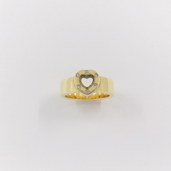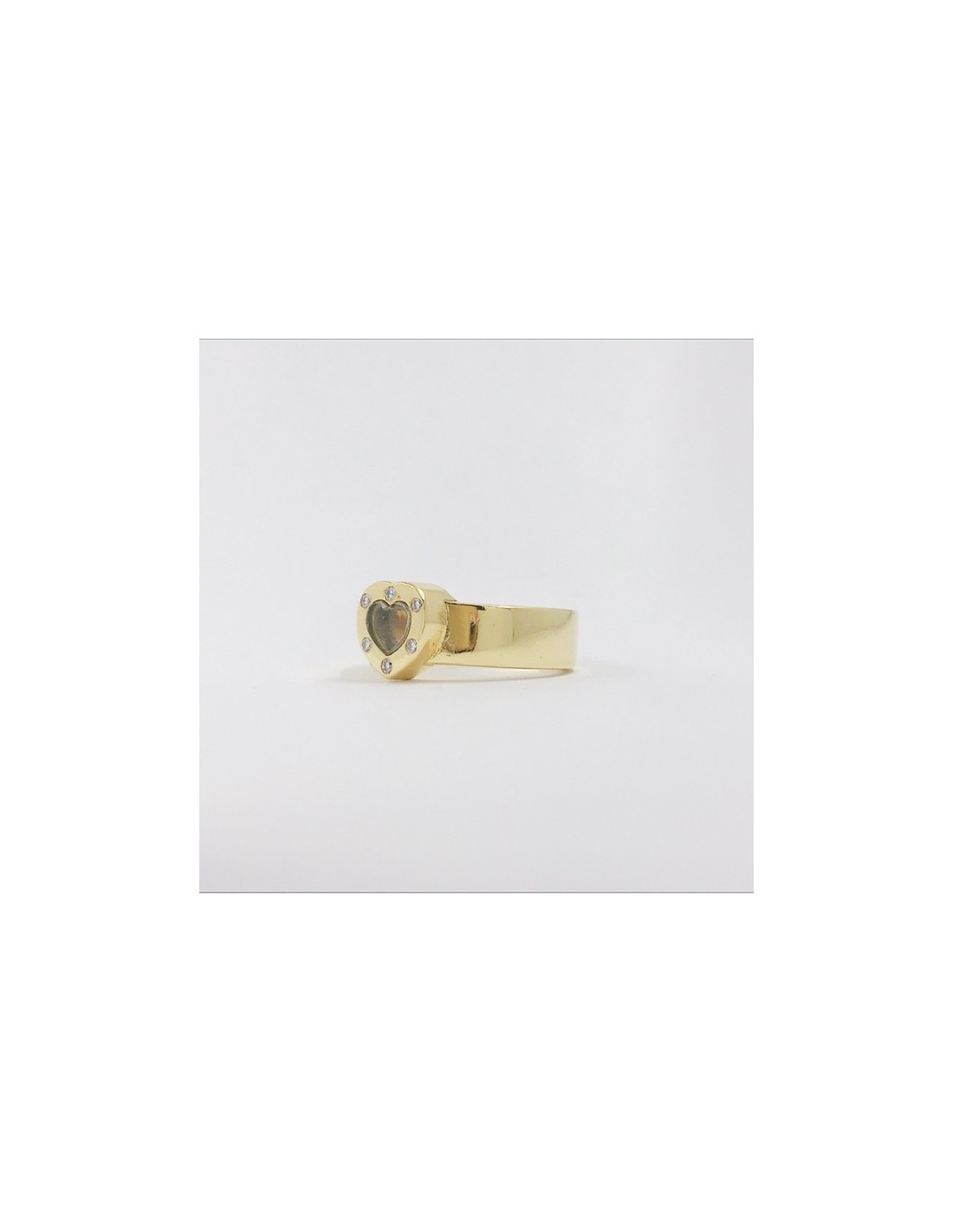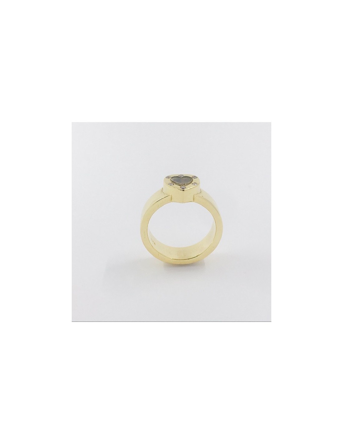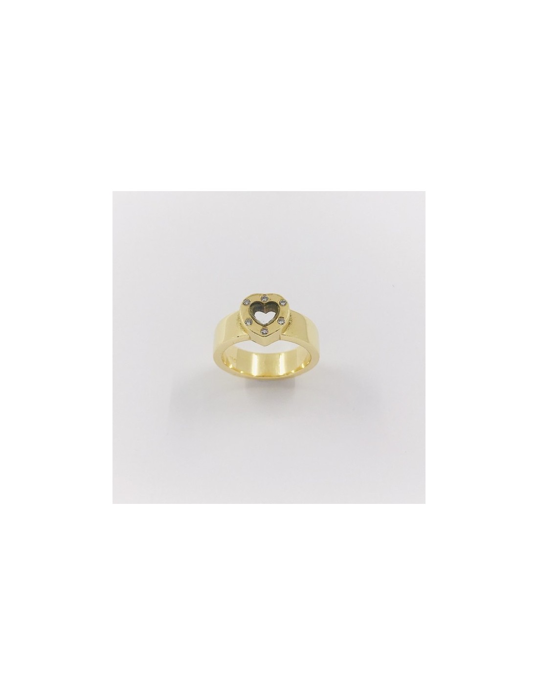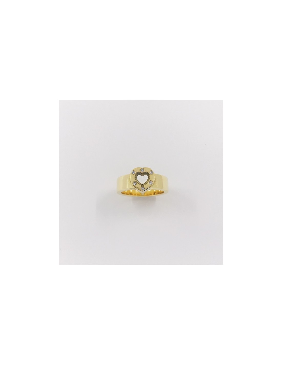 Anillo de segunda mano en oro amarillo de 18 kt. con corazón central decorado con brillantes. Talla: 13. Peso: 11 g.