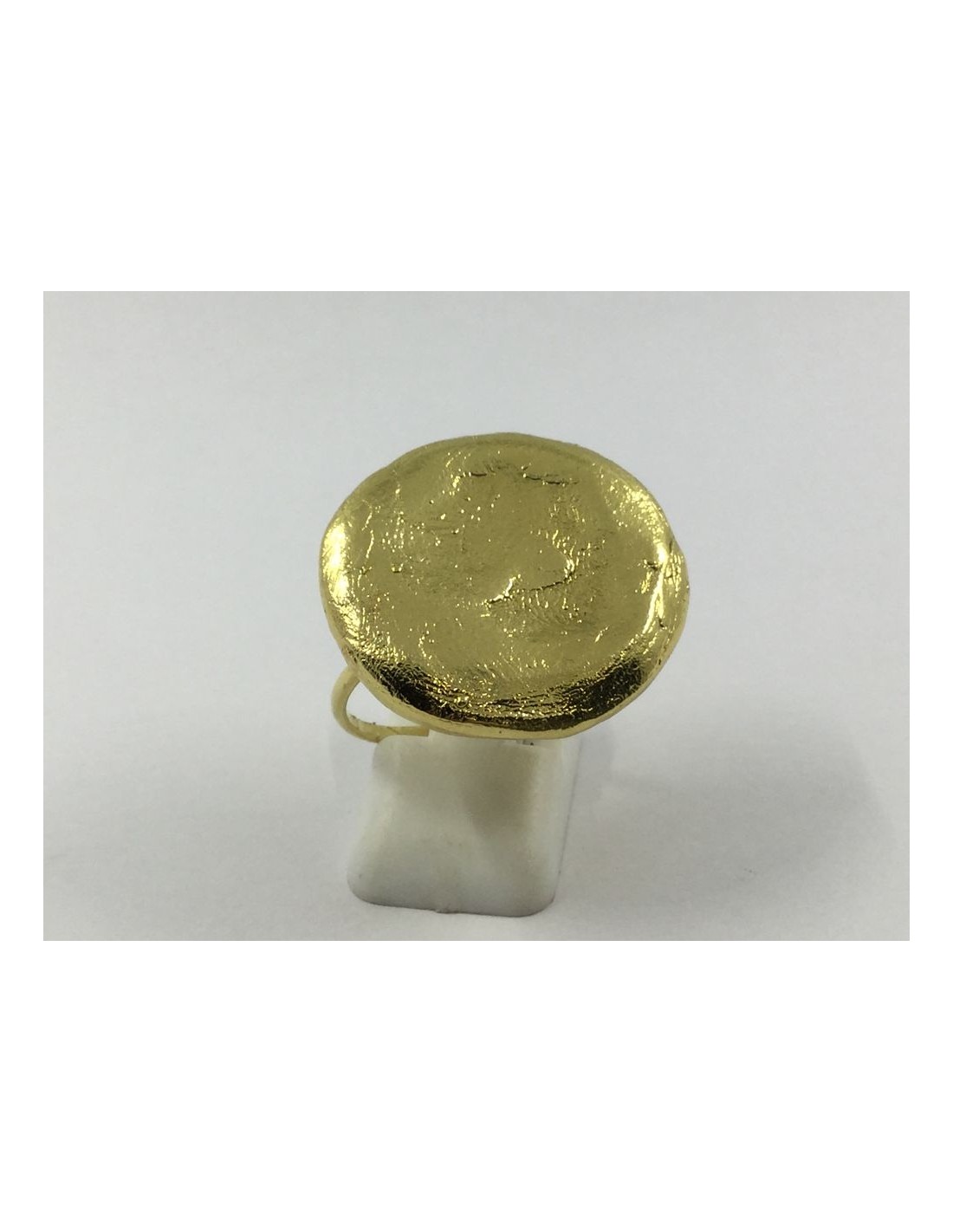 Anillo de segunda mano en oro de 18 kt. con disco de oro sin pulir. Talla: 15. Peso: 6,4 gr.