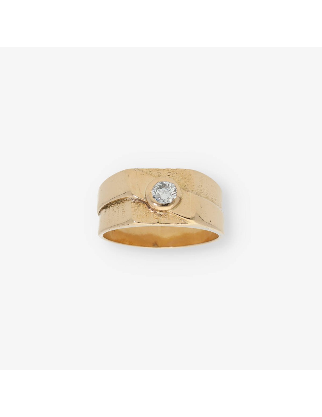 Anillo en oro amarillo de segunda mano con brillante. Una pieza ideal para los amantes de los anillos. Peso: 13.6gr. Talla: 25.