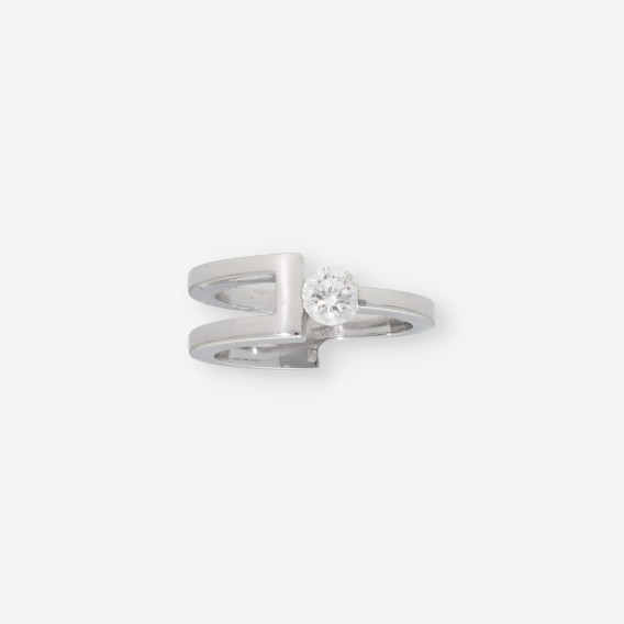 Anillo en oro blanco de segunda mano con brillante de 0.50 quilate aprox. Una pieza ideal para los amantes de los anillos. Peso: 7gr. Talla: 15.