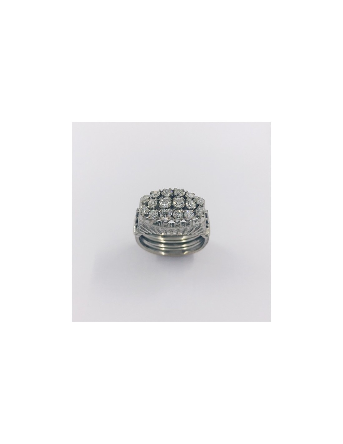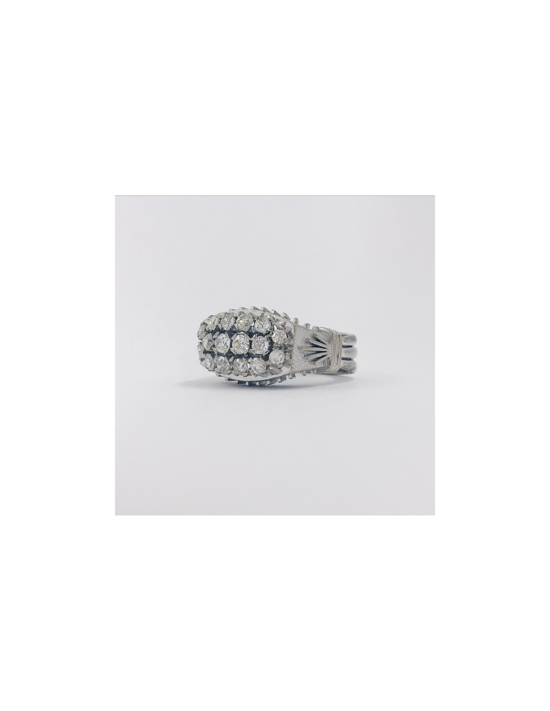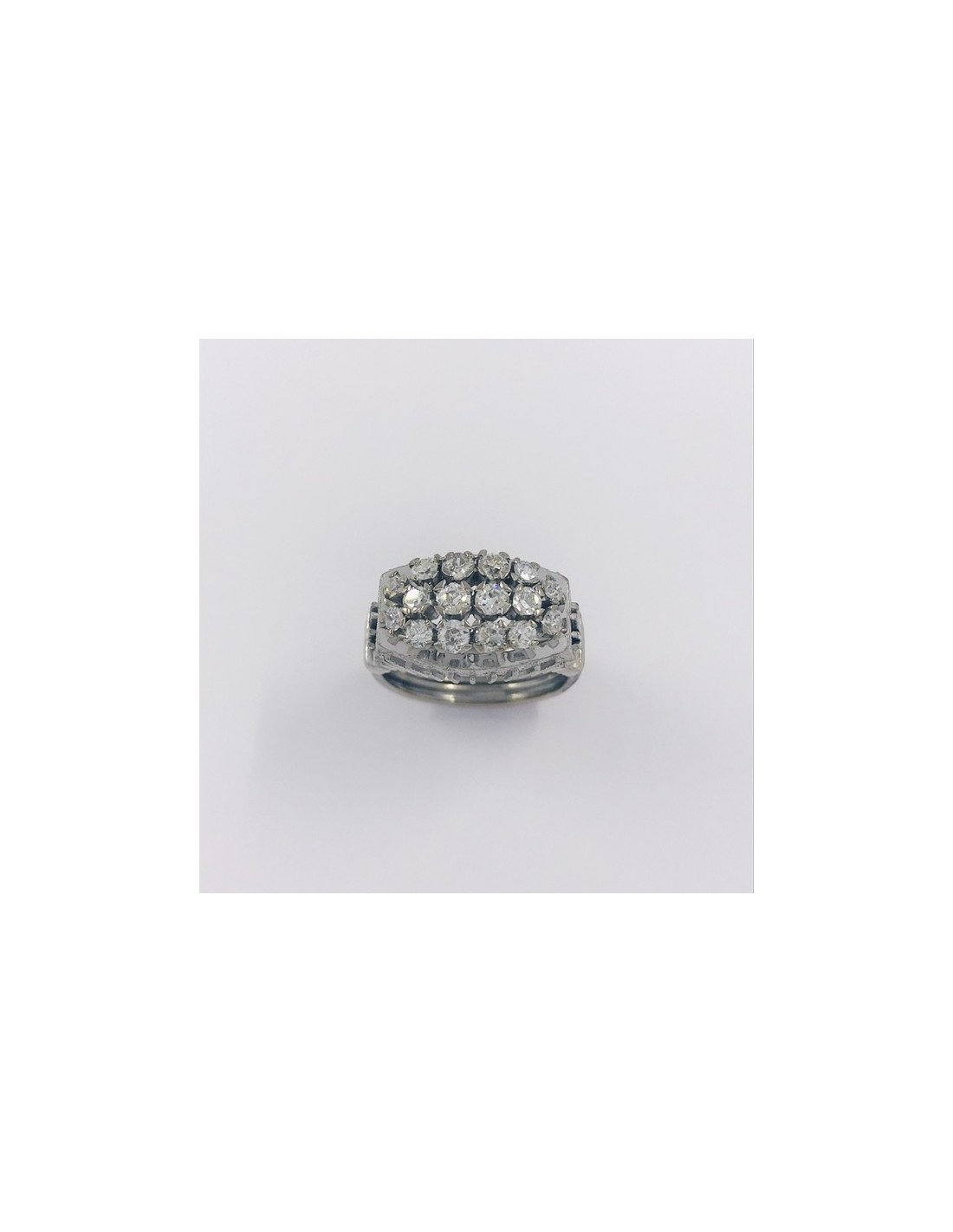Precioso anillo de segunda mano en oro de primera ley con brillantes en tres filas. Una pieza espectacular, ideal para cualquier momento. Talla: 21. Peso: 13,2gr.