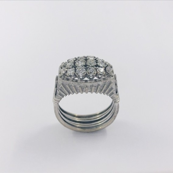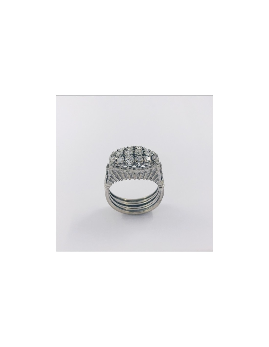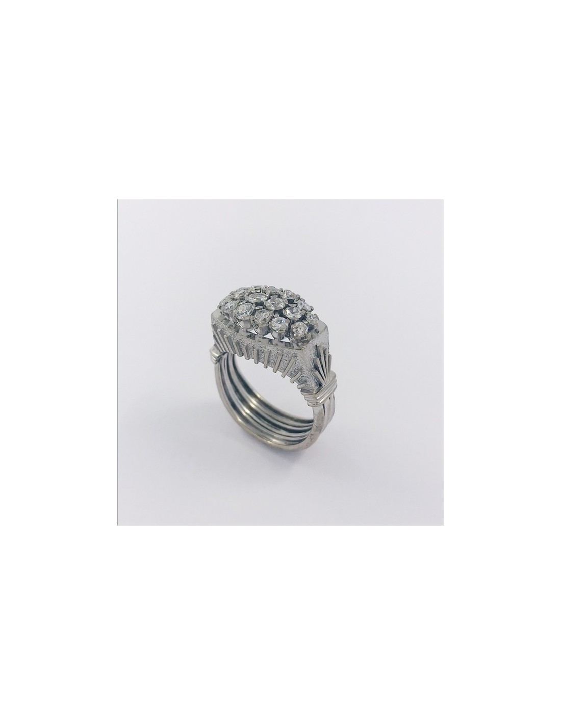 Precioso anillo de segunda mano en oro de primera ley con brillantes en tres filas. Una pieza espectacular, ideal para cualquier momento. Talla: 21. Peso: 13,2gr.