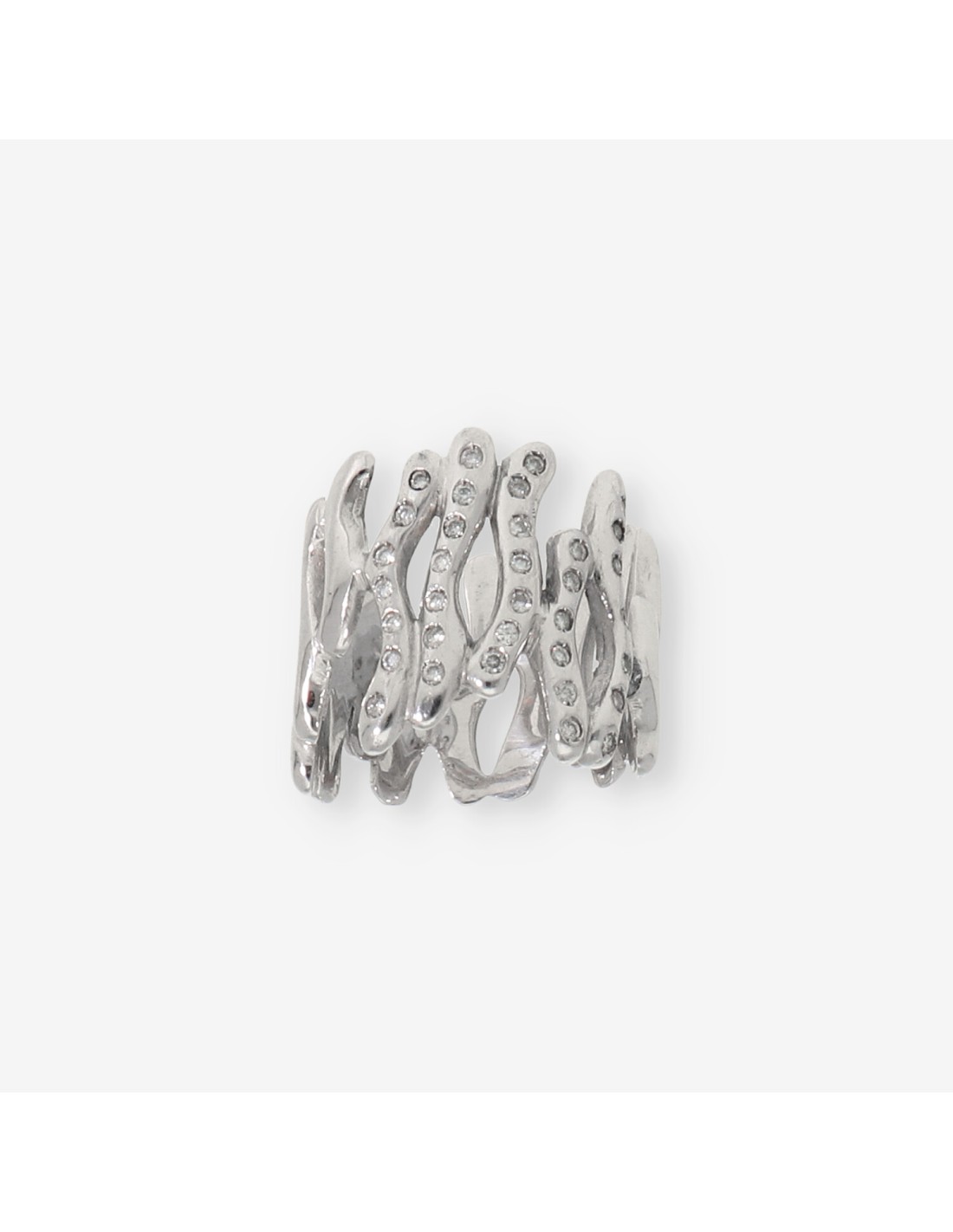 Magnifico anillo Tous de segunda mano en oro blanco de primera ley con brillantes y un precioso acabado moderno. Un regalo ideal para los amantes de las joyas. Talla: 16. Peso: 11.8gr.