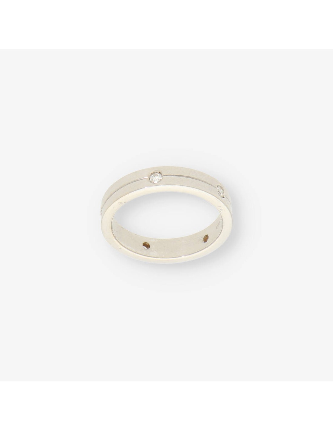 Precioso anillo de segunda mano en oro blanco de primera ley. Una magnifica pieza, ideal para los amantes de anillos. Talla: 13. Peso: 5.22gr.