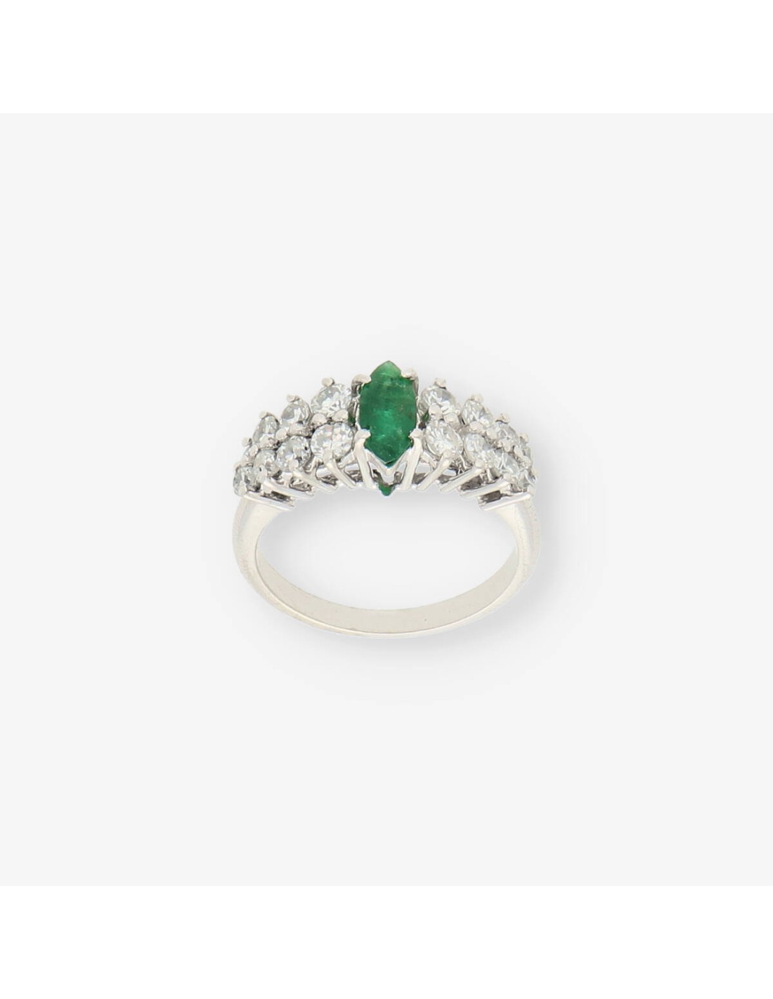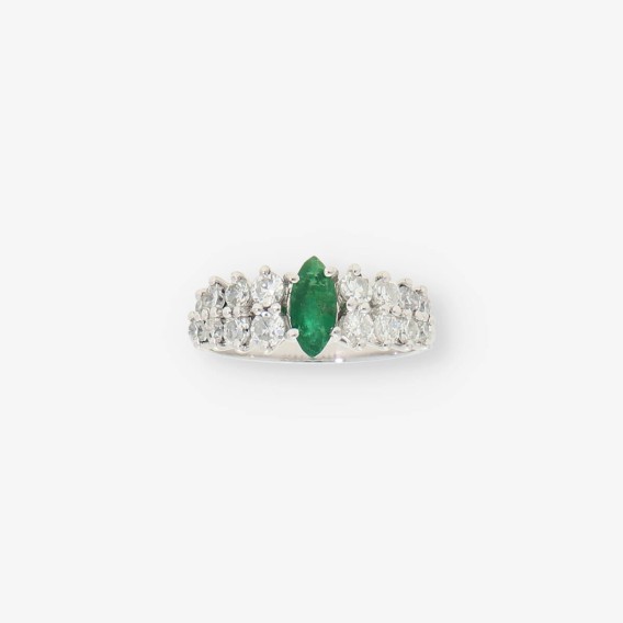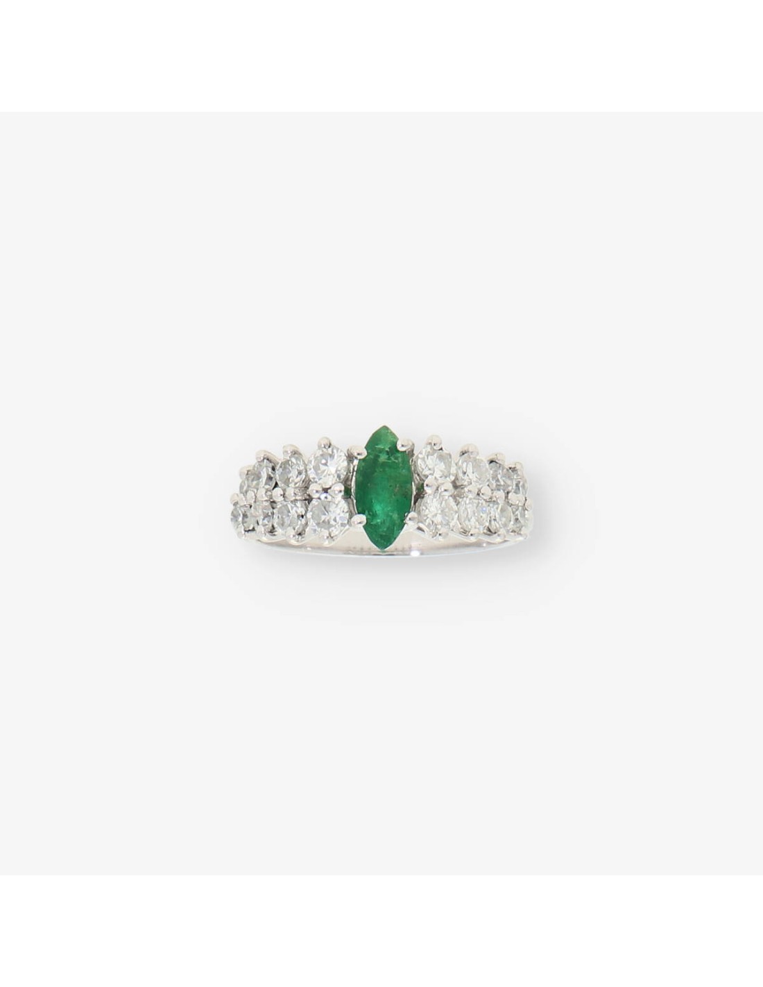 Anillo en oro blanco 18kt con brillantes y esmeralda