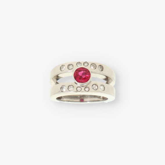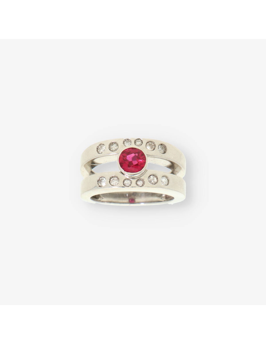 Anillo en oro blanco 18kt con Brillantes y piedra roja