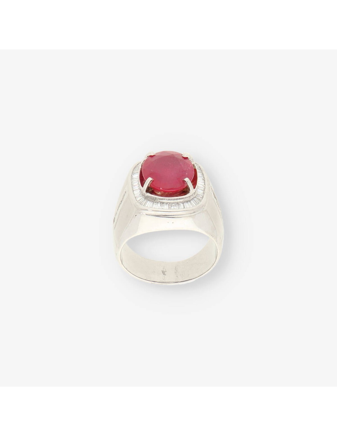 Anillo en oro blanco 18kt con Rubí y brillantes