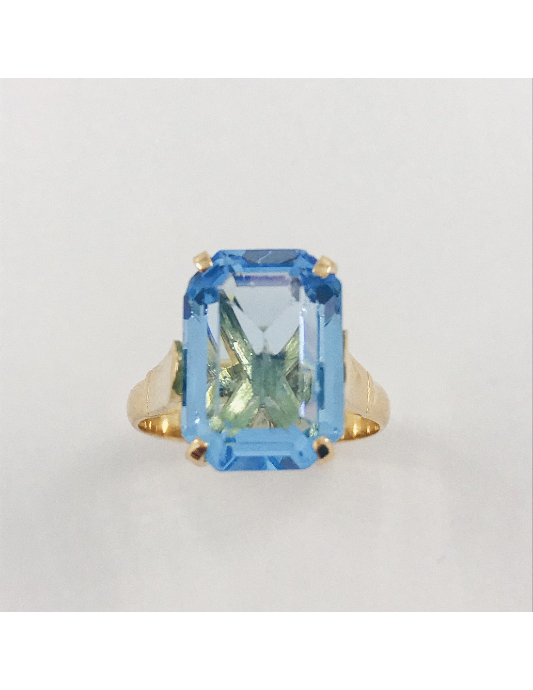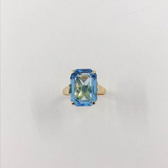 Anillo en oro con topacio azul.