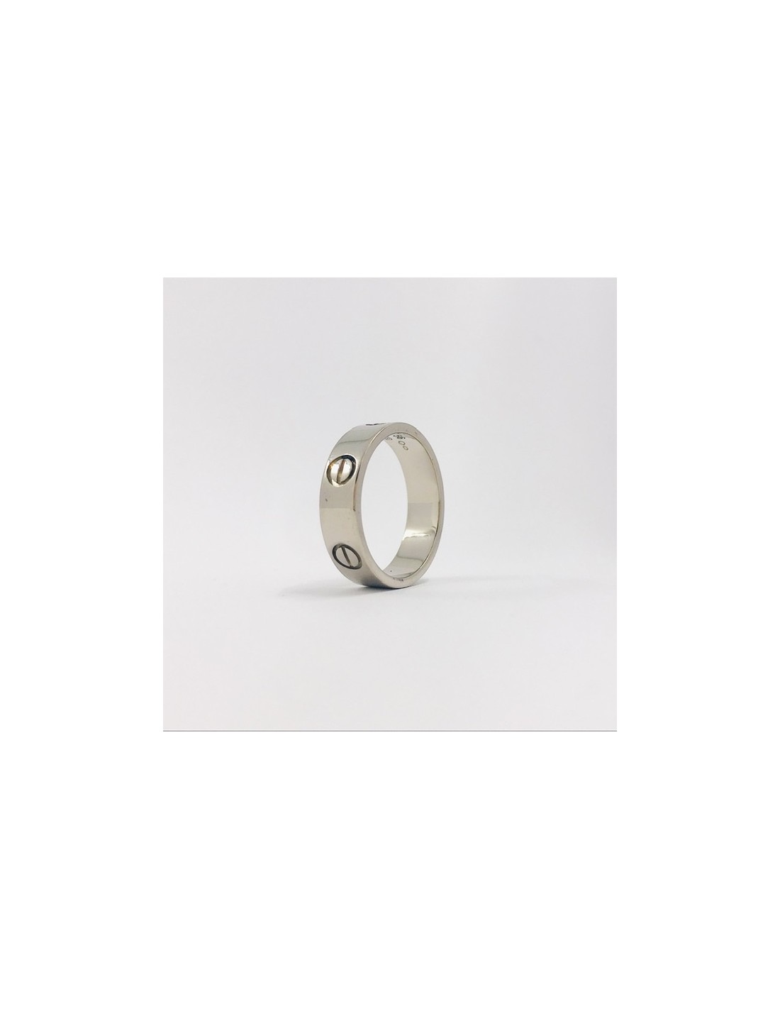 Magnífico anillo Love Cartier de segunda mano en oro blanco de primera ley. Una pieza ideal para los amantes de la firma. Talla: 16. Peso: 6.2gr.