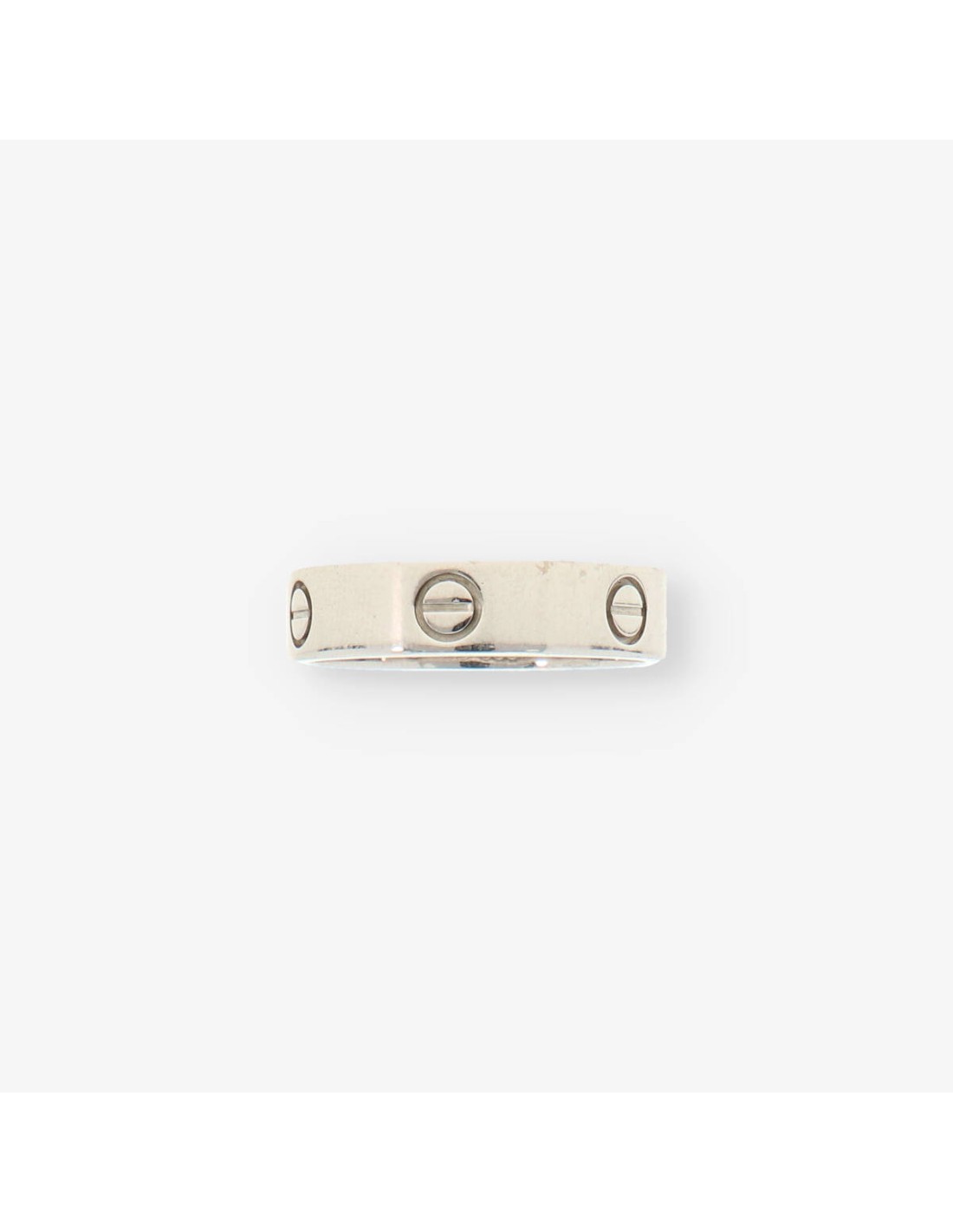 Magnífico anillo Love Cartier de segunda mano en oro blanco de primera ley. Una pieza ideal para los amantes de la firma. Talla: 23 (63). Peso: 7.26gr.
