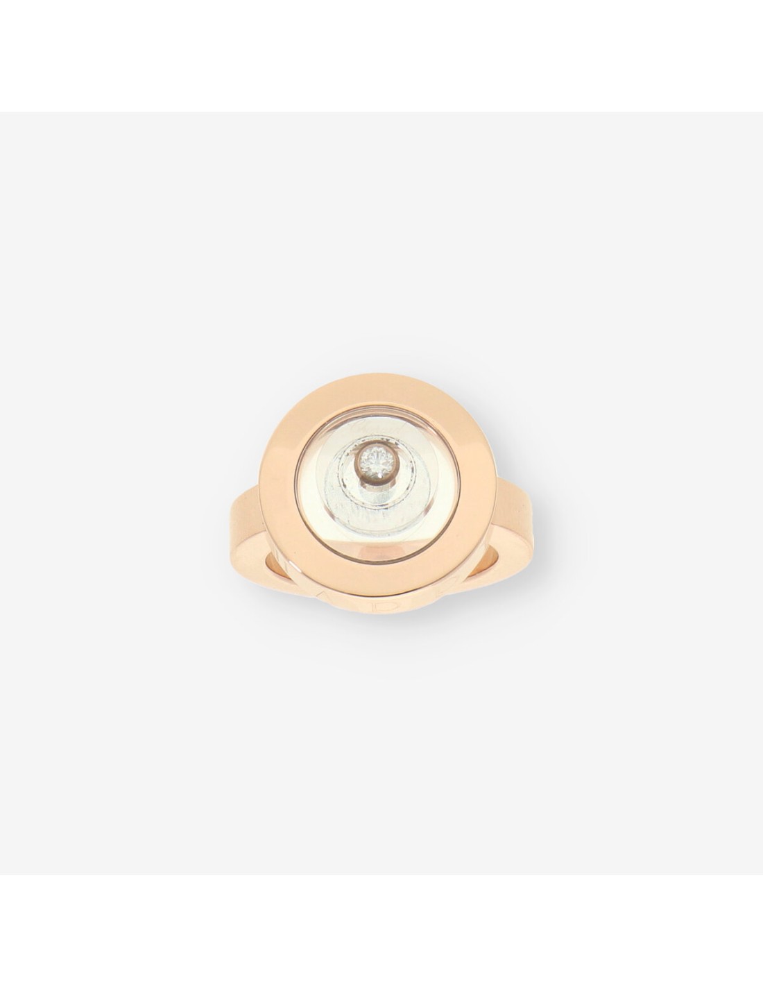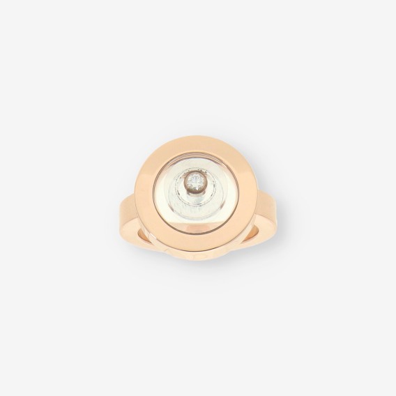 Anillo Chopard de la prestigiosa serie Happy Spirit, elaborado en oro rosa de primera ley. Esta pieza única, de segunda mano, destaca por su diseño elegante y moderno, con un diamante móvil en el centro que aporta un toque de dinamismo y sofisticación. Con un peso total de 17,8 gramos y una talla 14, este anillo es una joya icónica ideal para quienes buscan exclusividad y refinamiento en cada detalle. Perfecto para complementar cualquier estilo con un aire de lujo.