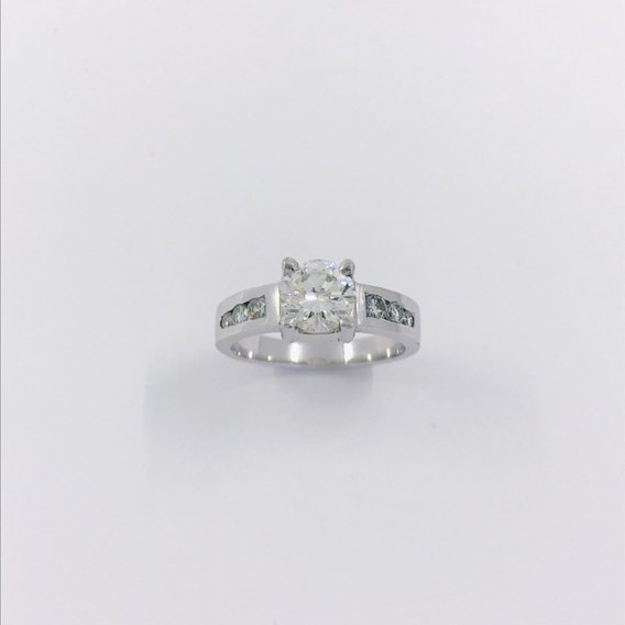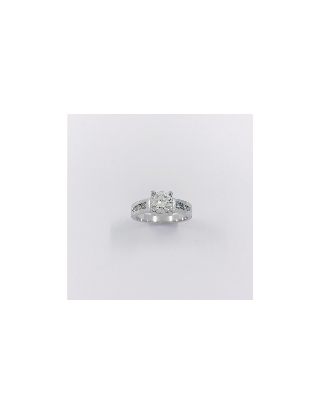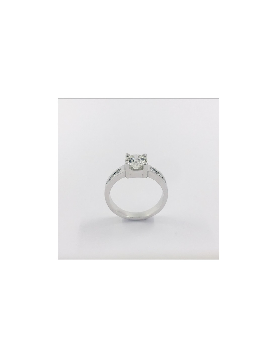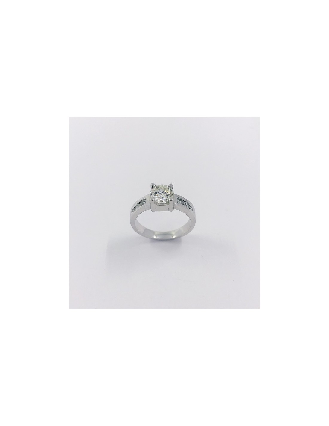 Espectacular anillo de segunda mano en oro blanco de primera ley con brillante central de 1,05Qt. (aprox) y y brillantes laterales. Ideal como anillo de compromiso, regalo de cumpleaños, aniversario de boda, etc. Talla: 5,8. Peso: gr.