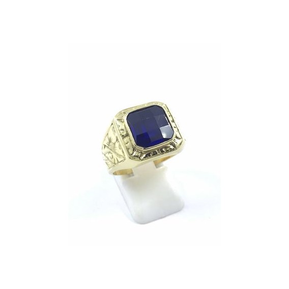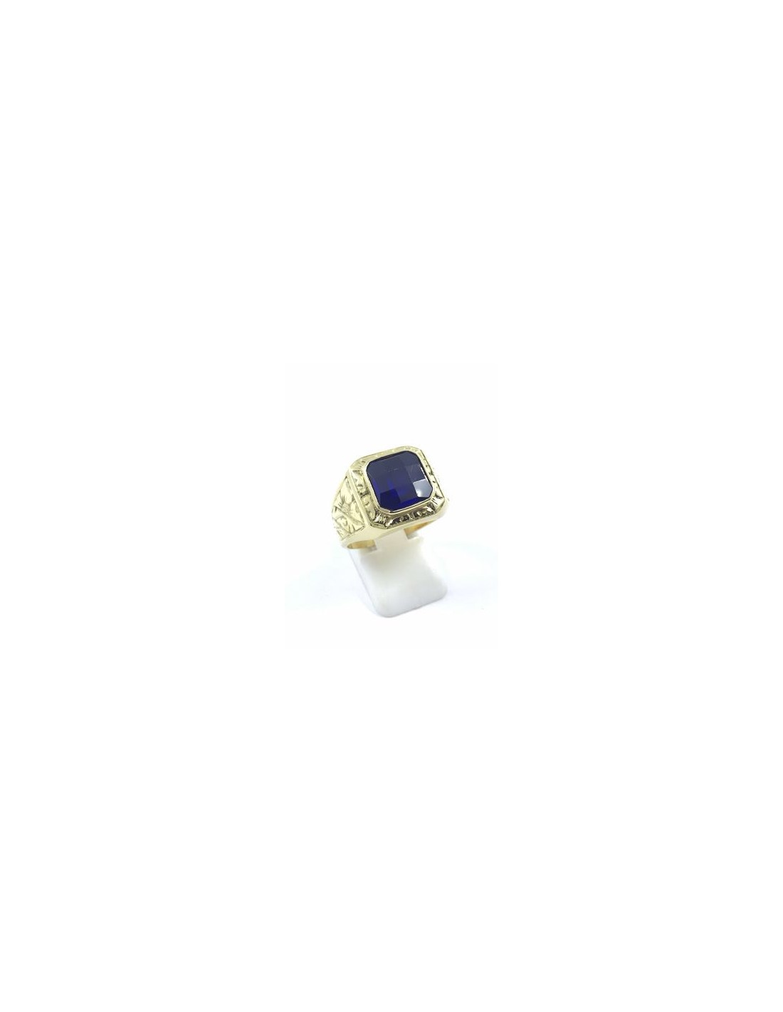 Anillo sello de segunda mano en oro de 18 kt. y piedra azul. Talla: 23. Peso: 11,5 gr.