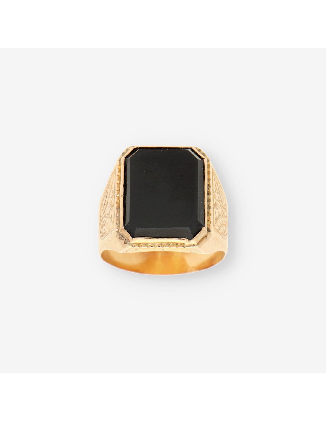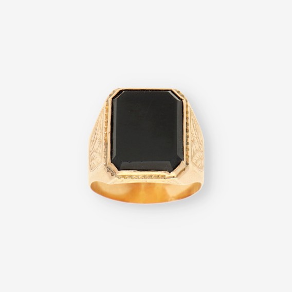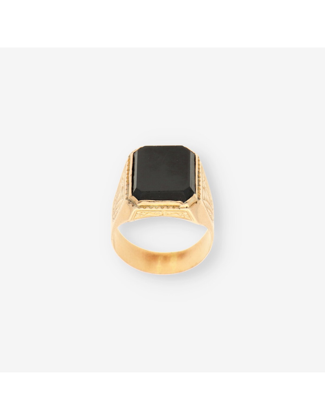 Sortija sello de oro con cabeza de soldado romano grabada en piedra central.