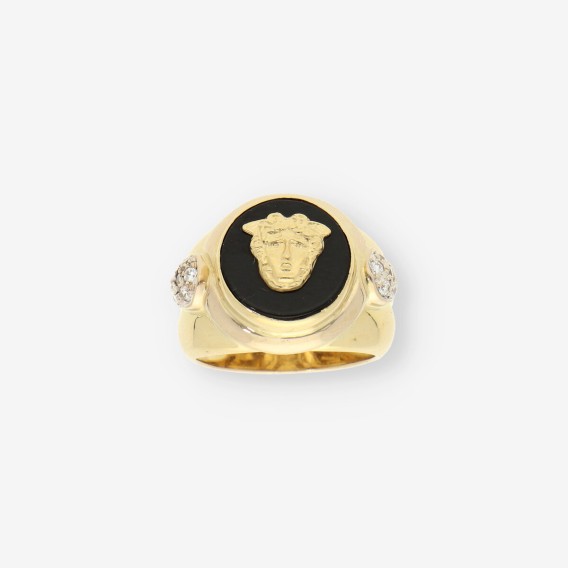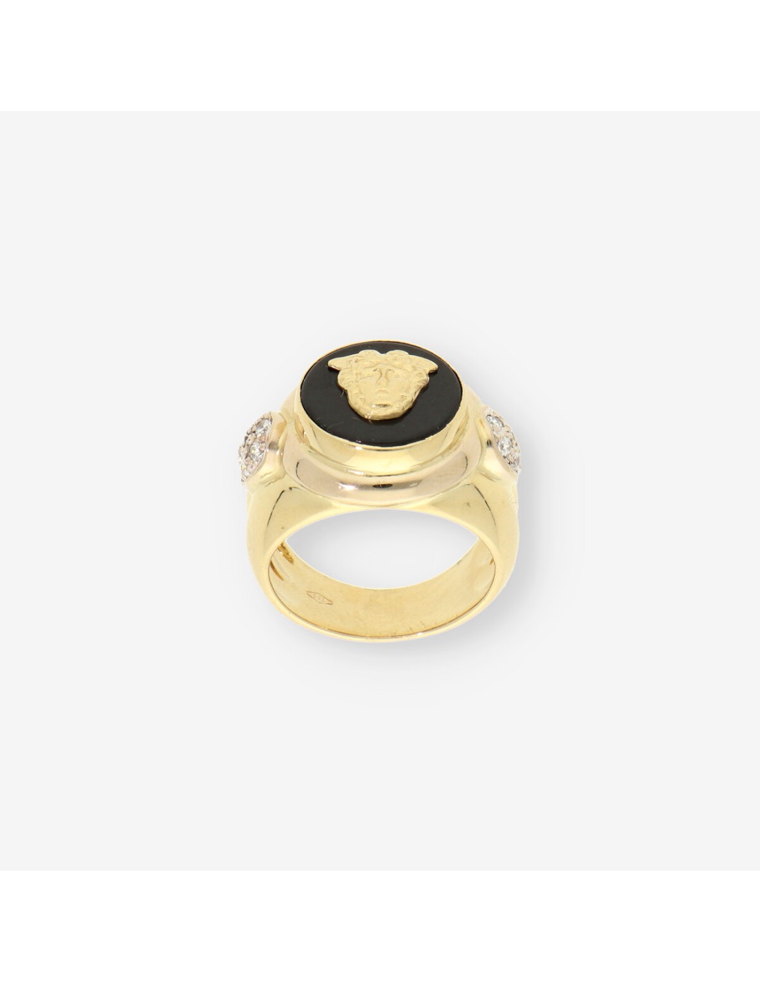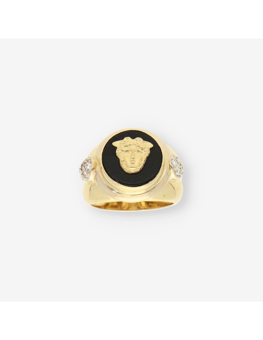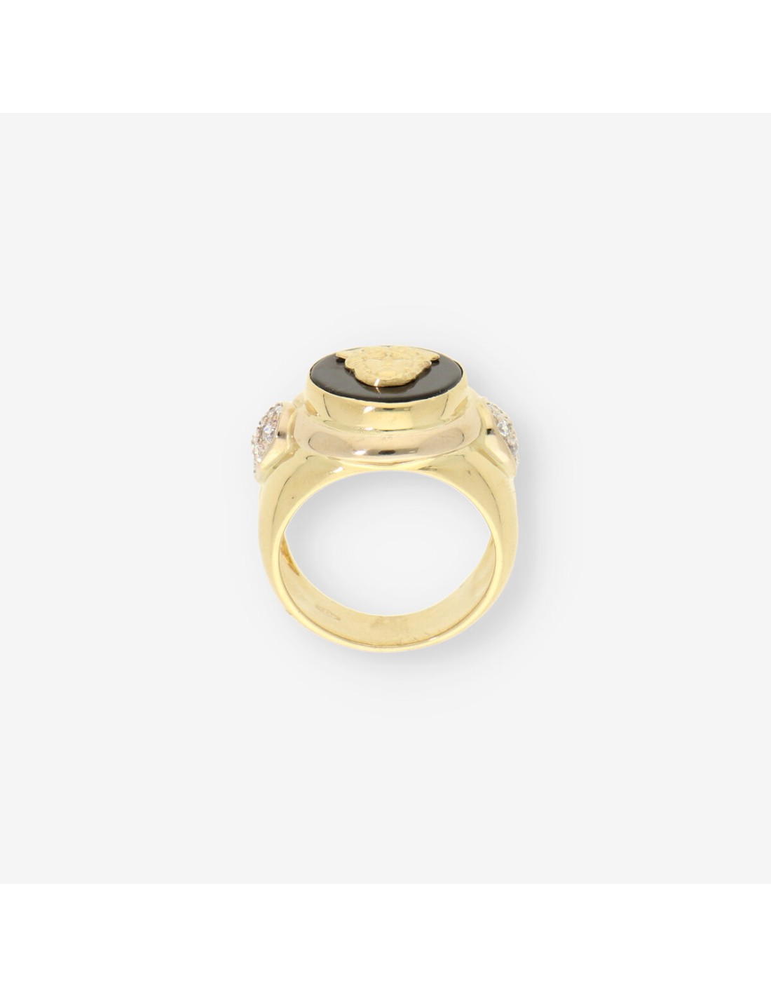 Este impresionante anillo sello de oro de primera ley es una pieza de joyería de segunda mano que destaca por su diseño único y elegante. Con un peso de 13.5 gramos y una talla 13, este anillo combina la sofisticación del oro de primera ley con la brillantez de las circonitas, creando una joya de gran presencia y estilo. El anillo presenta un distintivo grabado en el centro, enmarcado por dos circonitas en cada lado, que añaden un toque de brillo y lujo. Perfecto para quienes buscan una pieza de joyería única que resalte su estilo personal y buen gusto. Ideal tanto para ocasiones especiales como para el uso diario, este anillo sello es una adición valiosa a cualquier colección de joyería fina.