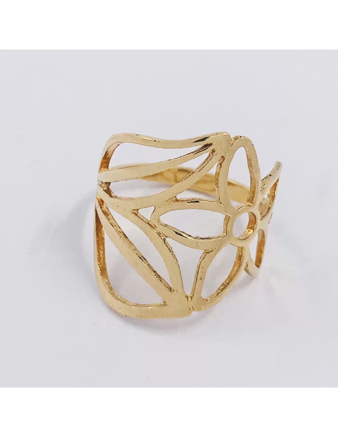 Precioso anillo tous de segunda mano en oro amarillo con un lindo diseño en con la margarita acompañada con hojas. Dedo: 13. Peso: 3,9gr.