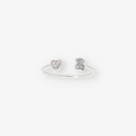 Magnifico anillo Tous de segunda mano en oro blanco de primera ley con brillantes y un precioso acabado moderno. Un regalo ideal para los amantes de Tous. Talla: 14. Peso: 1gr.