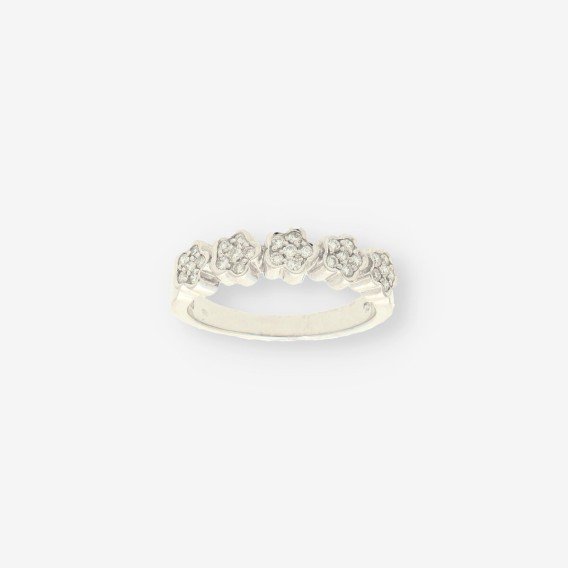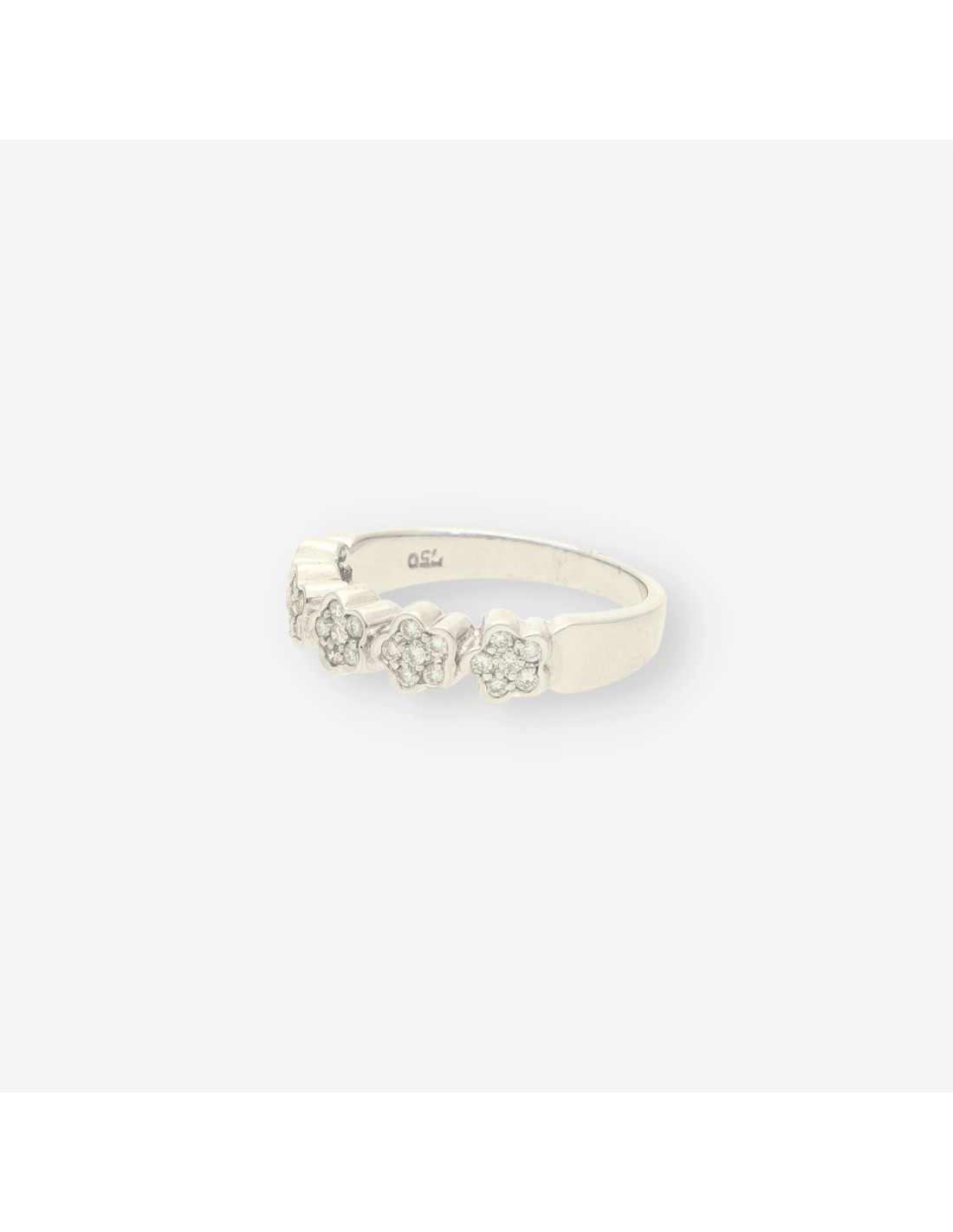 Anillo TOUS de segunda mano en oro blanco de primera ley, talla 12 y con un peso de 3.6 gramos. Este elegante diseño presenta delicados detalles florales, cada uno adornado con brillantes que aportan un toque de sofisticación y elegancia. Perfecto para cualquier ocasión especial o para añadir un toque de lujo a tu colección diaria. ¡Hazlo tuyo y brilla con este exquisito anillo!