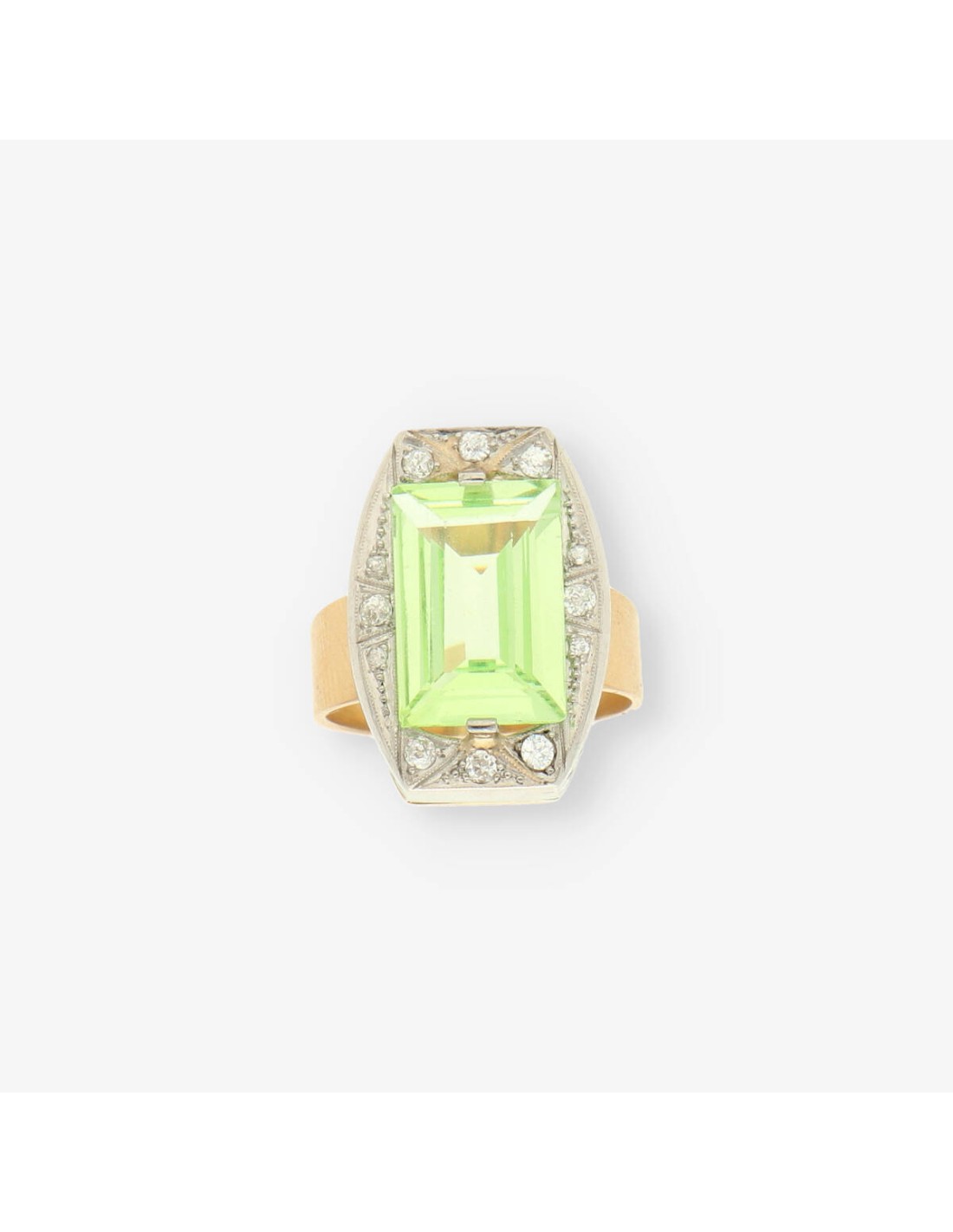 Precioso anillo vintage de segunda mano en oro amarillo de 18kt con una magnífica piedra semipreciosa verde. Ideal para cualquier momento. Talla: 14. Peso: 7.1gr.