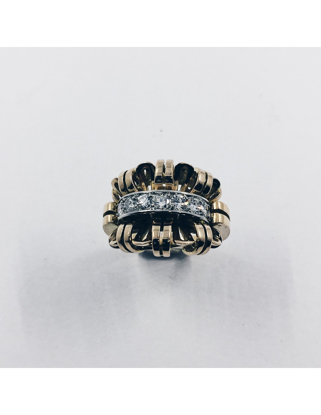 Anillo vintage de segunda mano en oro de 18 kt. y diamantes en el centro. Peso: 8,9 g.