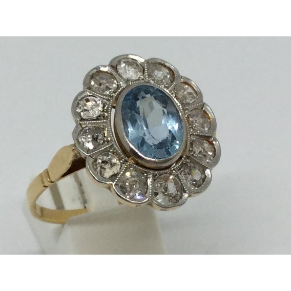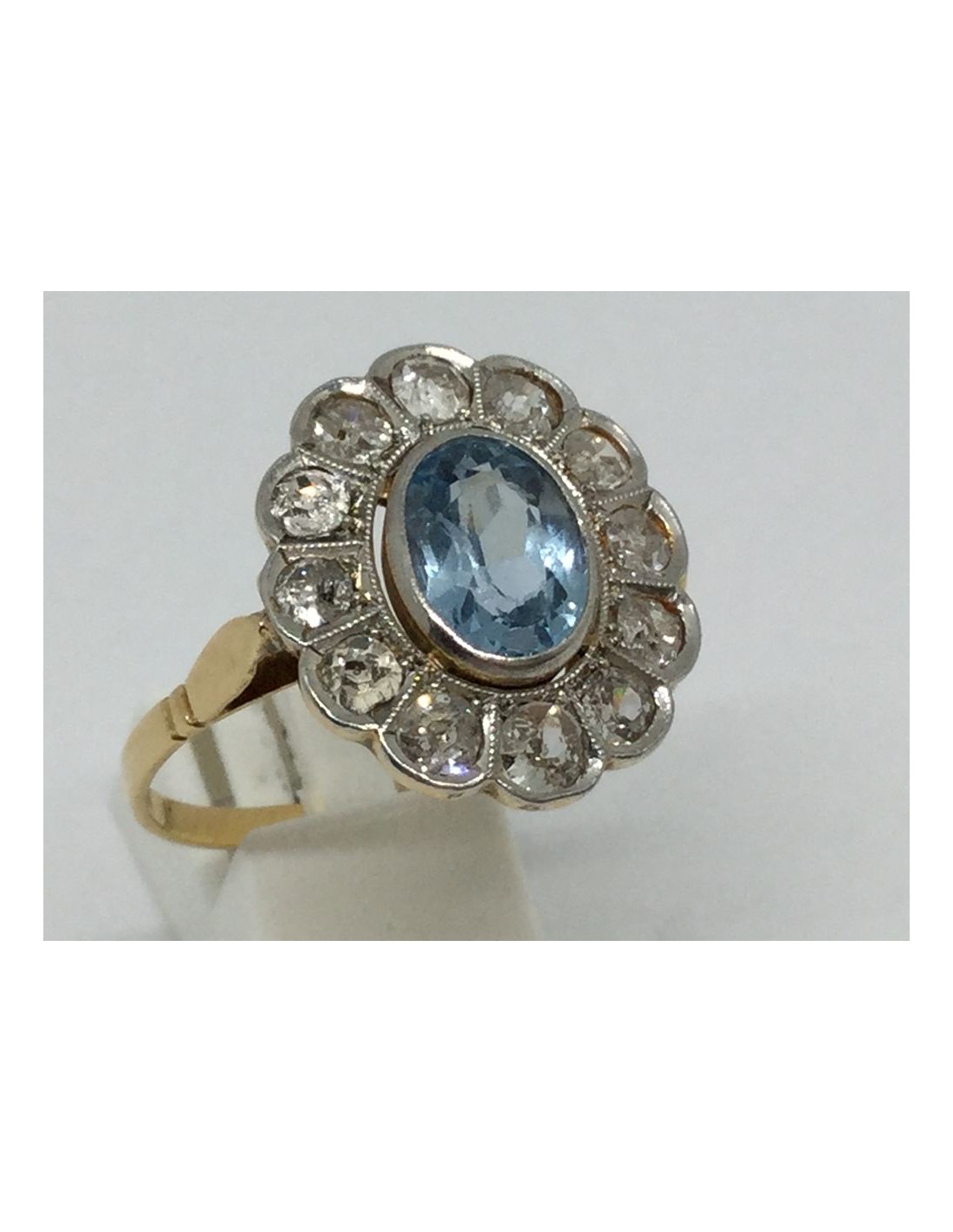Antigua sortija rosetón en oro con con brillantes y topacio central