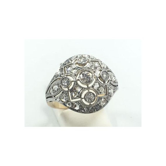 Antiguo anillo de ocasión en oro y brillantes. Talla: 18. Peso: 4,8 gr.
