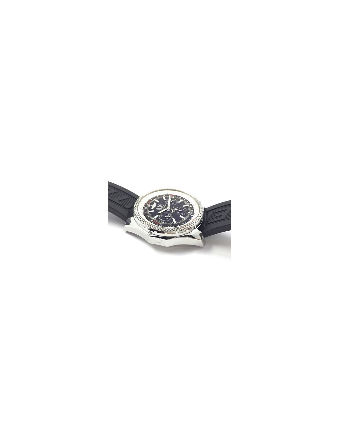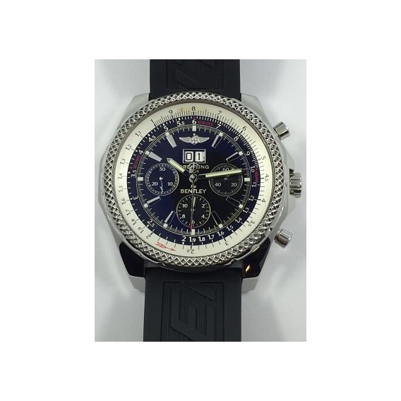Breitling Bentley 6.75 de segunda mano. Caja de acero de 48 mm. de diámetro. Fondo roscado con la forma de una llanta Bentley. Corona atornillada, cristal zafiro. Función cronográfica, fecha panorámica a las 12. Movimiento automático. Pulsera original de caucho.
