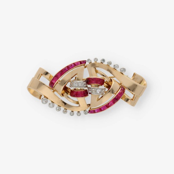 Broche de oro 18kt con brillantes y piedras semipreciosas