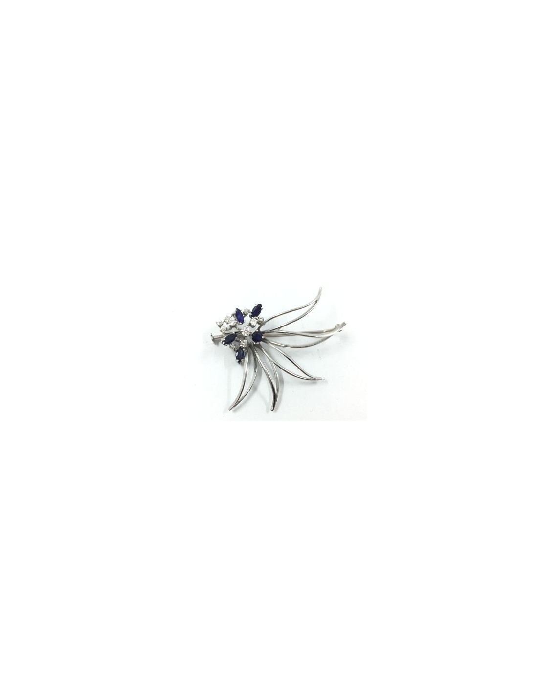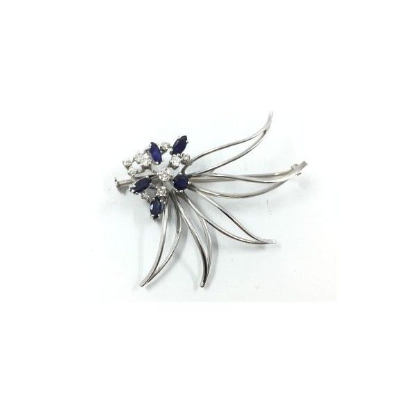 Broche en oro blanco, brillantes y esmeralda.