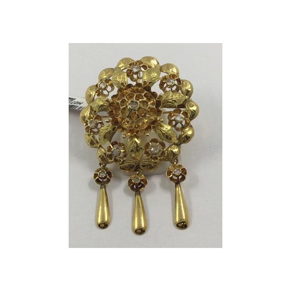 Broche de ocasión en oro de 18 kt. con diamantes. Medidas: 5,8 x 4 cm. Peso: 10,1 gr.