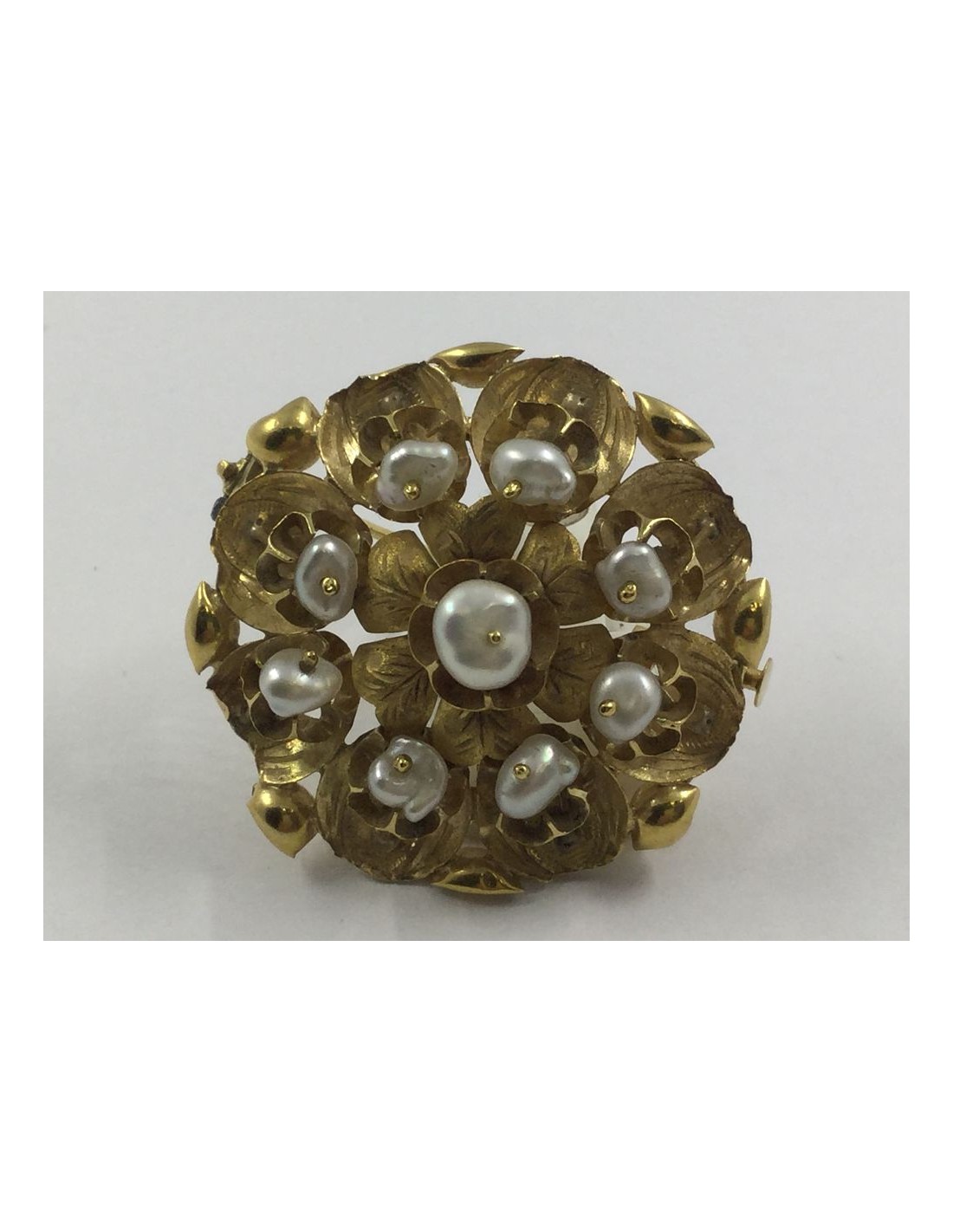 Broche en oro, diamantes y perla