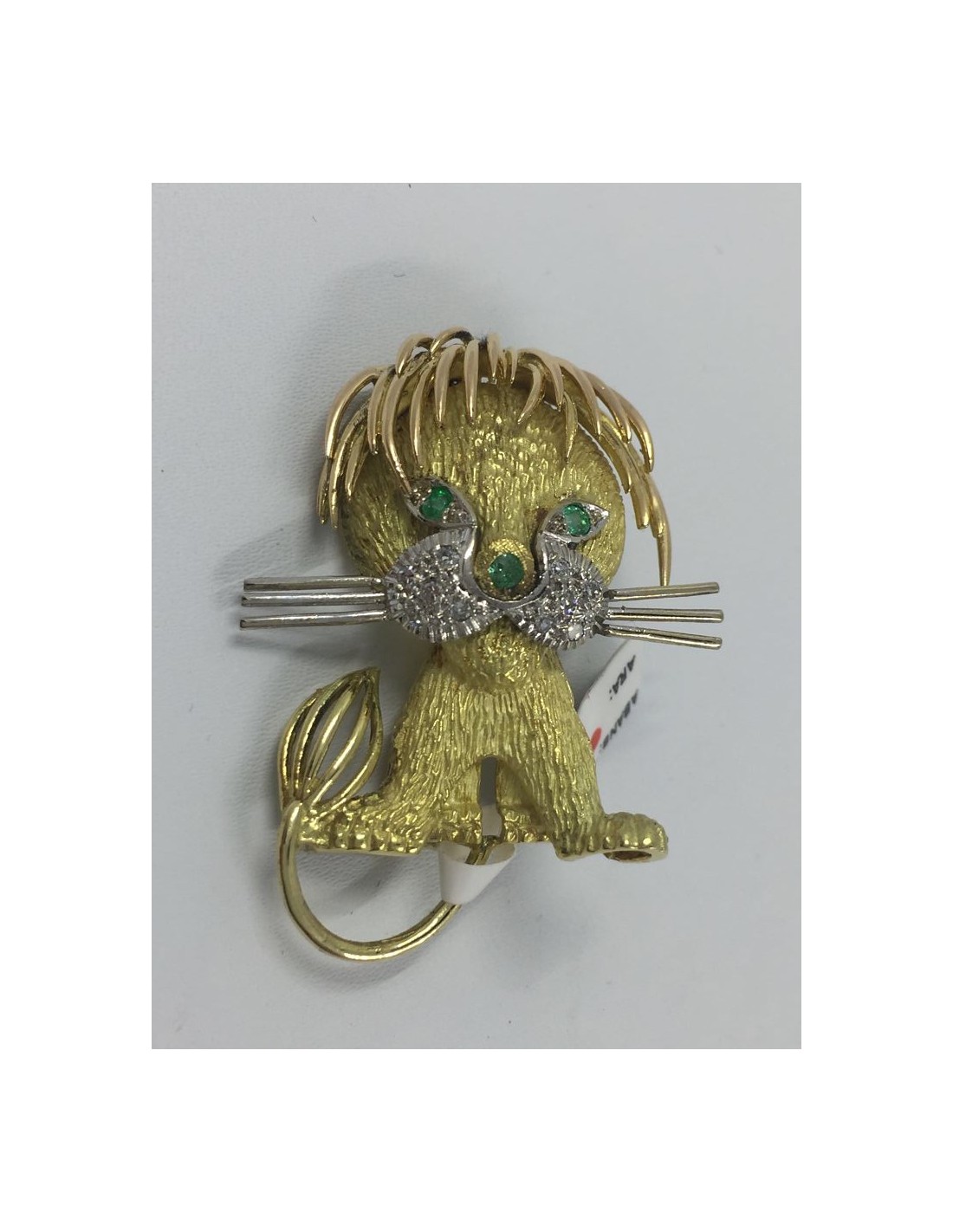 Broche en oro, brillantes y esmeraldas