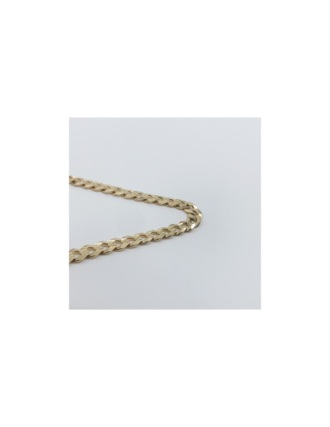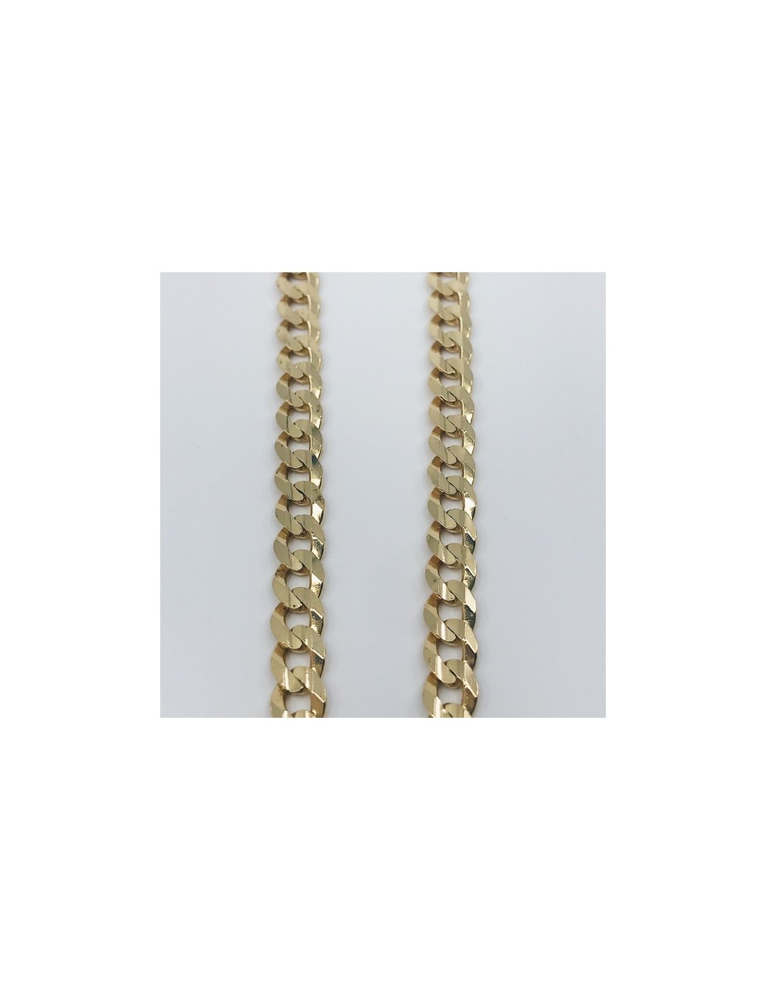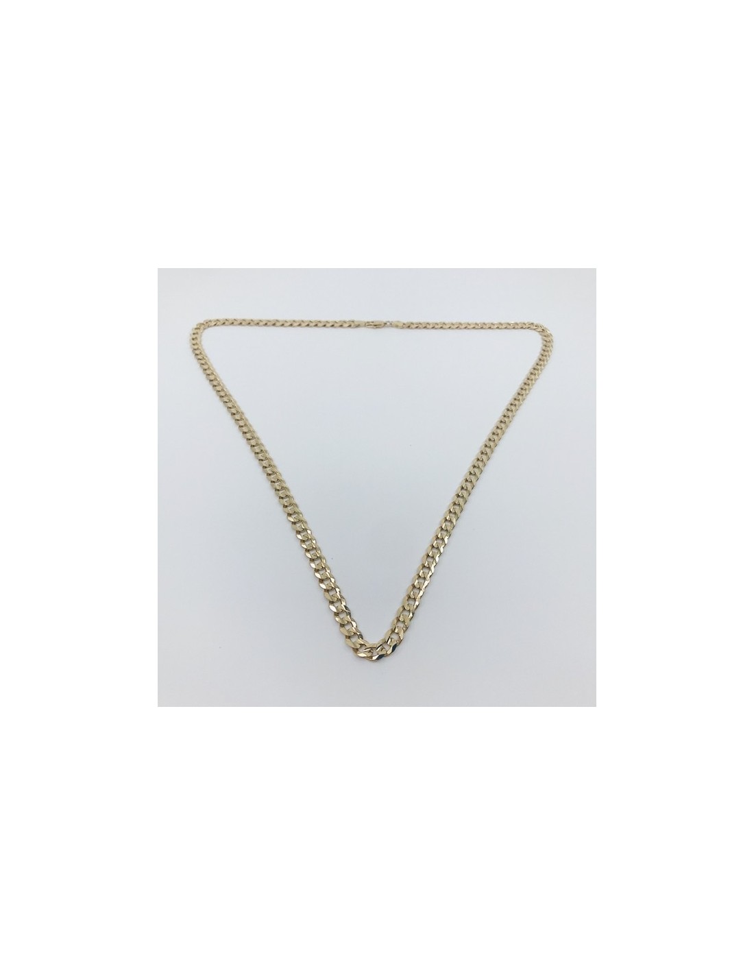 Preciosa cadena de segunda mano en oro amarillo de primera ley con un diseño de cadena barbada plana, una impresionante pieza además de preciosa. Longitud: 60cm. Peso: 36,3gr.