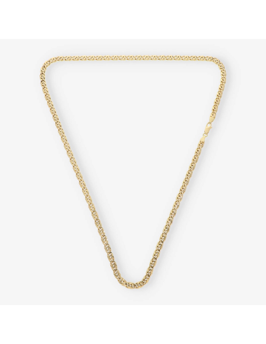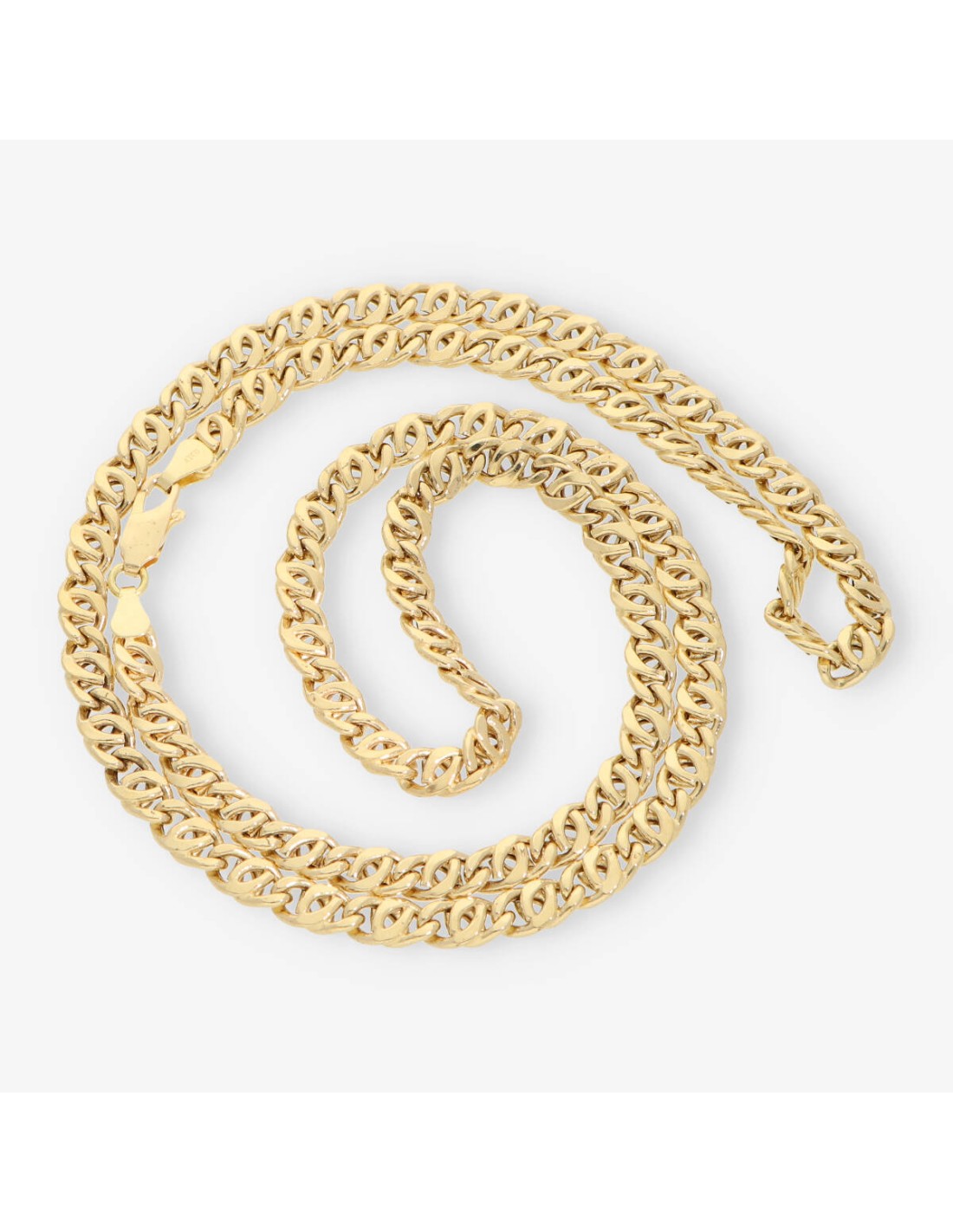 Preciosa cadena de segunda mano en oro amarillo de primera ley con cierre de mosquetón. Una pieza magnífica para ser lucida en cualquier momento y lugar. Largo: 60cm. Ancho: 0.5cm. Peso: 19.2gr.