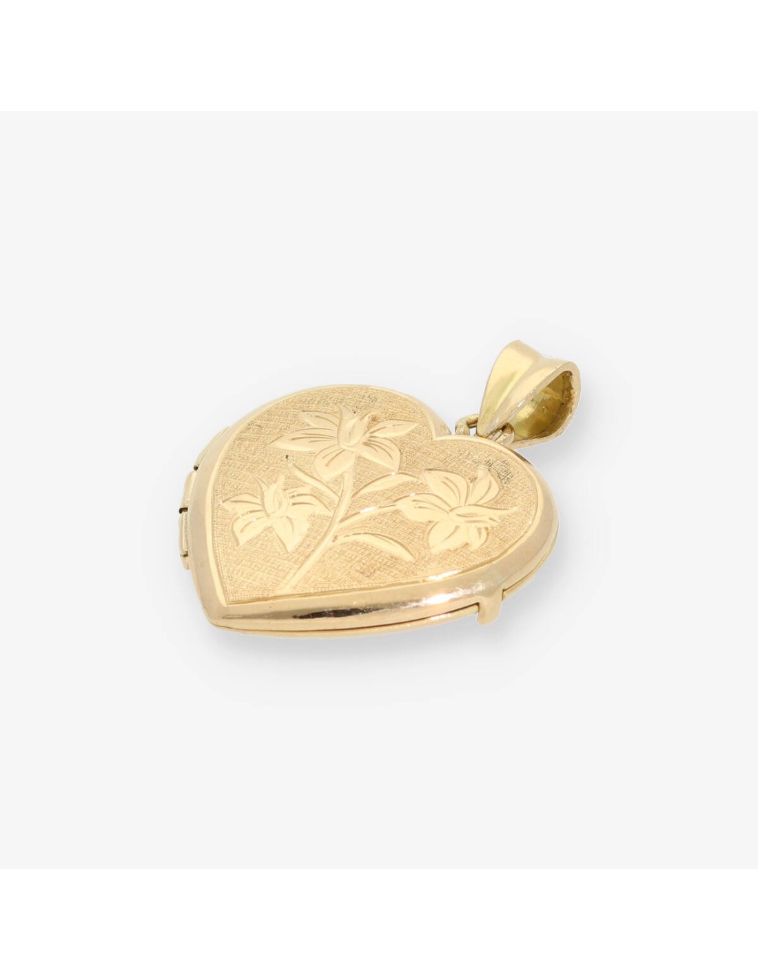Colgante corazon de segunda mano en oro amarillo de primera ley. Alto: 3.1cm. Ancho: 2.2cm. Peso: 4gr.