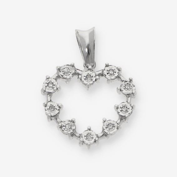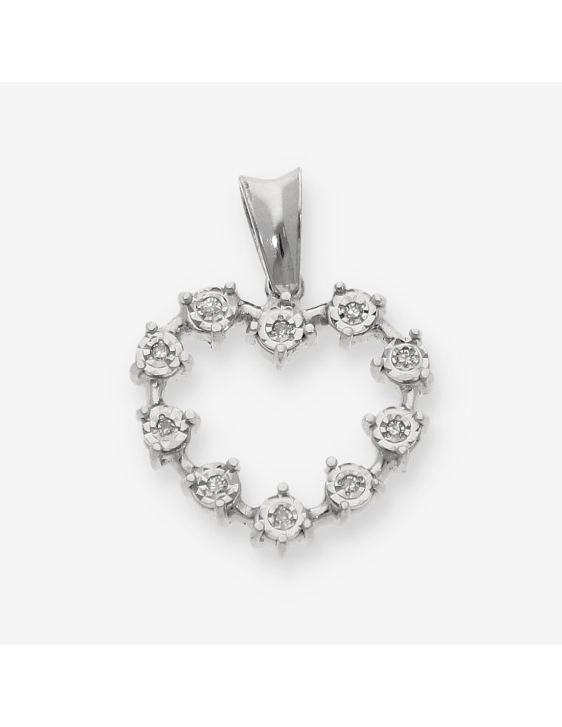 Precioso colgante de segunda mano con forma de corazón en oro blanco de primera ley con brillantes. Un magnifico regalo. Largo: 2.4cm. Ancho: 1.5cm. Peso: 3.4gr.