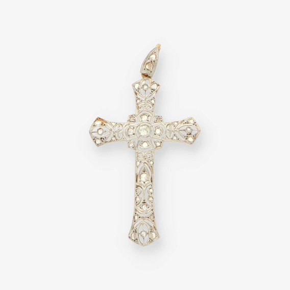Precioso colgante cruz vintage en oro amarillo de primera ley. Un regalo ideal. Alto: 5cm. Ancho: 2.6cm. Peso: 3.3gr.