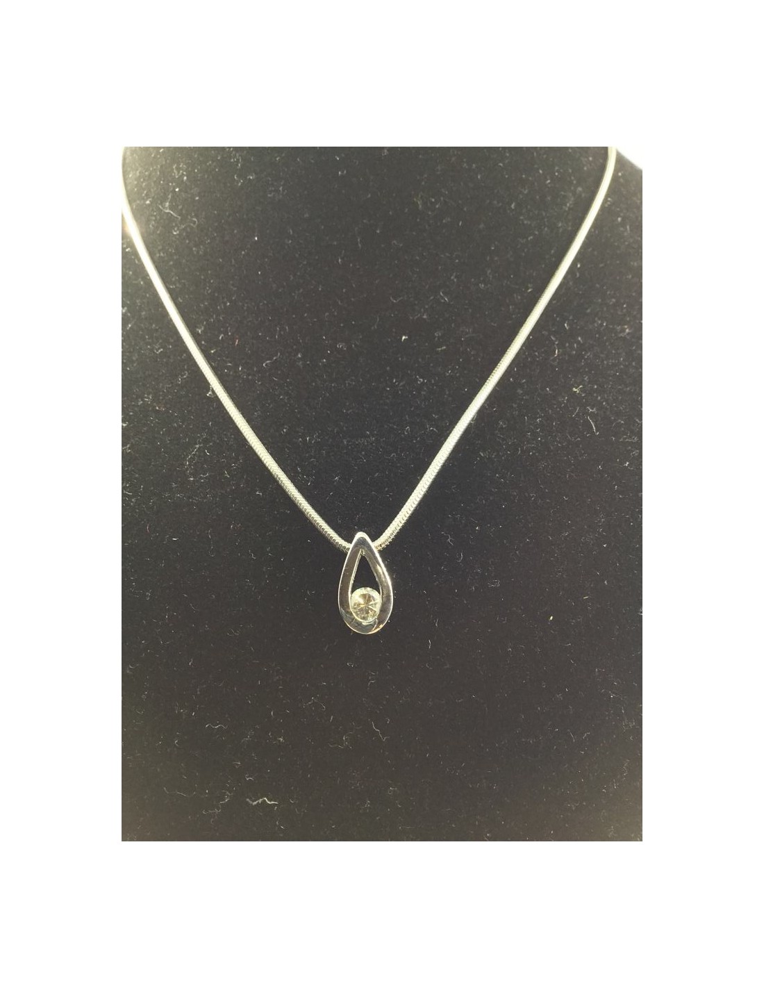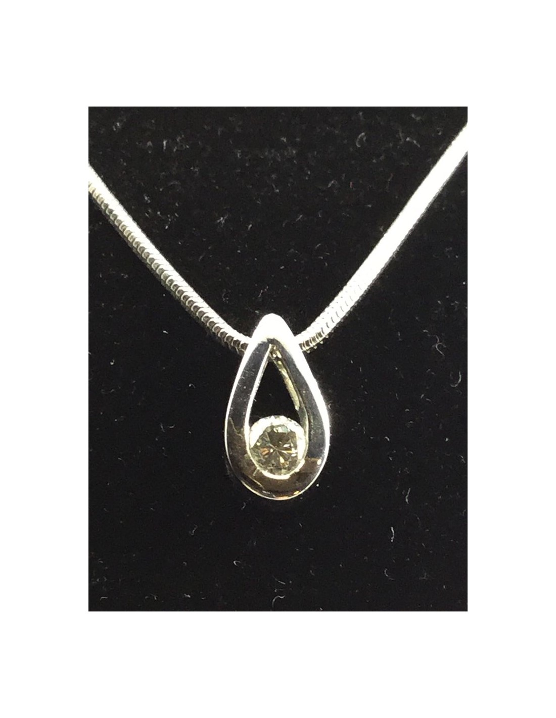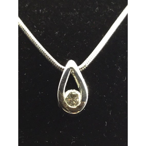 Colgante de segunda mano en oro blanco de 18 kt. y brillante de 0,25 qt. aprox. Con cadena de oro blanco. Peso total: 5 gr.