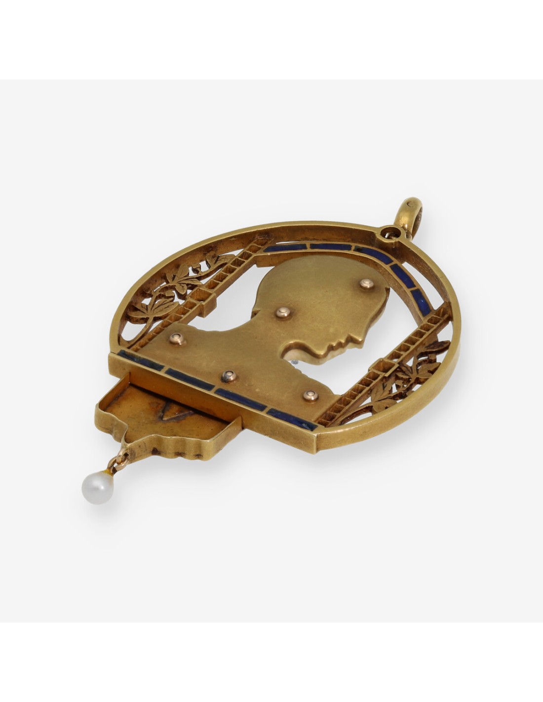 Precioso colgante masriera en oro amarillo de primera ley con diamantes, una pieza espectacular y perfectamente conservada. Ideal para los amantes de la firma y coleccionistas. Alto: 6.5cm. Ancho: 3.8cm. Peso: 19gr.