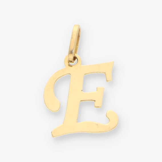 Precioso colgante en letra E de segunda mano en oro amarillo de primera ley. Alto: 2.1cm. Ancho: 1.5cm. Peso: 1.2gr.