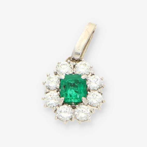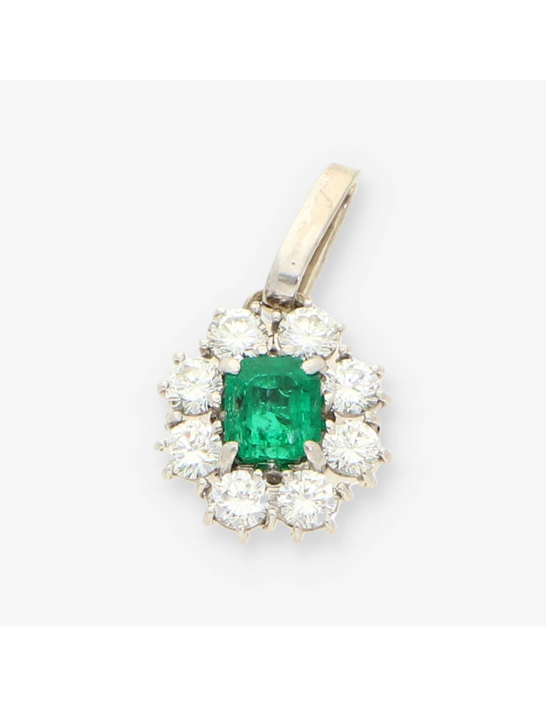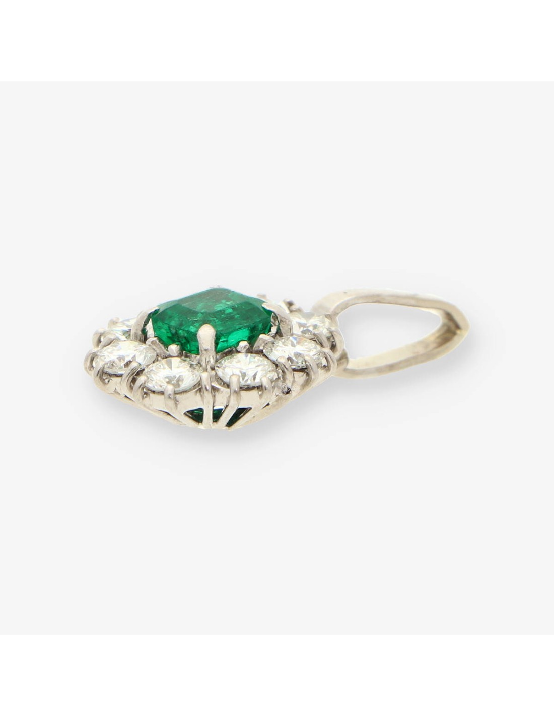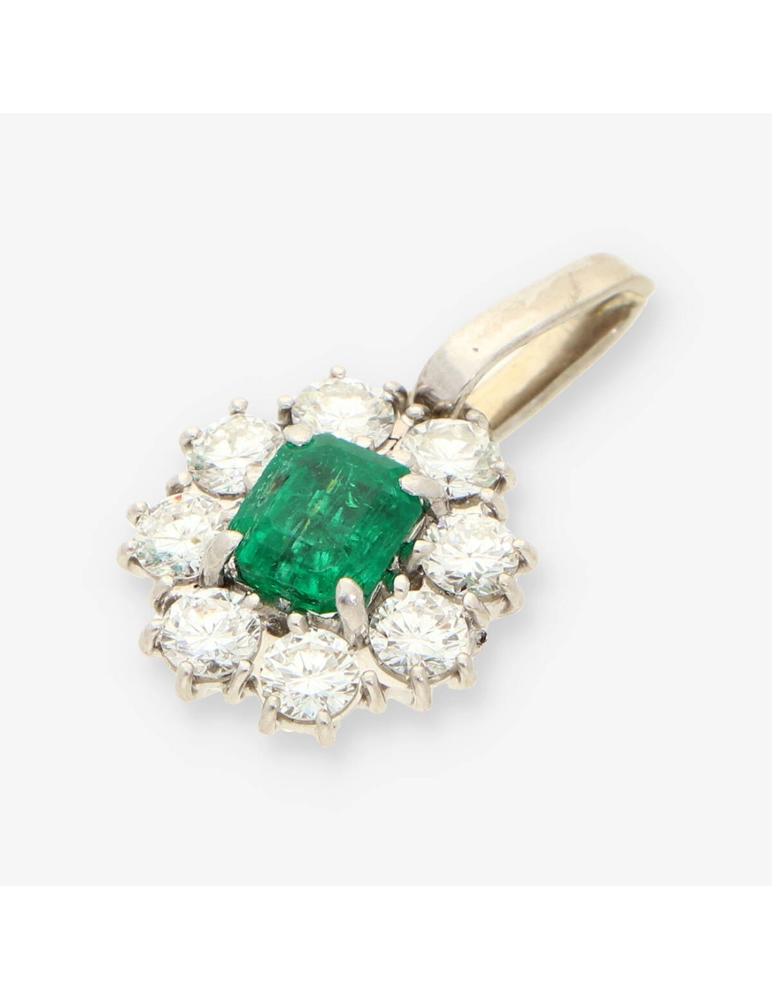 Colgante oro blanco 18kt con esmeralda y brillantes