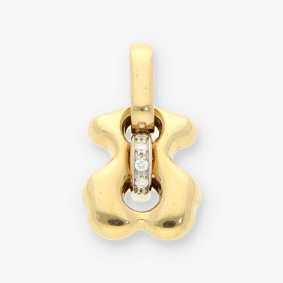 Precioso colgante tous de segunda mano en oro amarillo de primera ley y brillantes. Un clásico diseño del osito, lindo, elegante. Una pieza hecha para complementar. Alto(Máximo): 1.5cm. Ancho: 1cm. Peso: 2.4gr.
