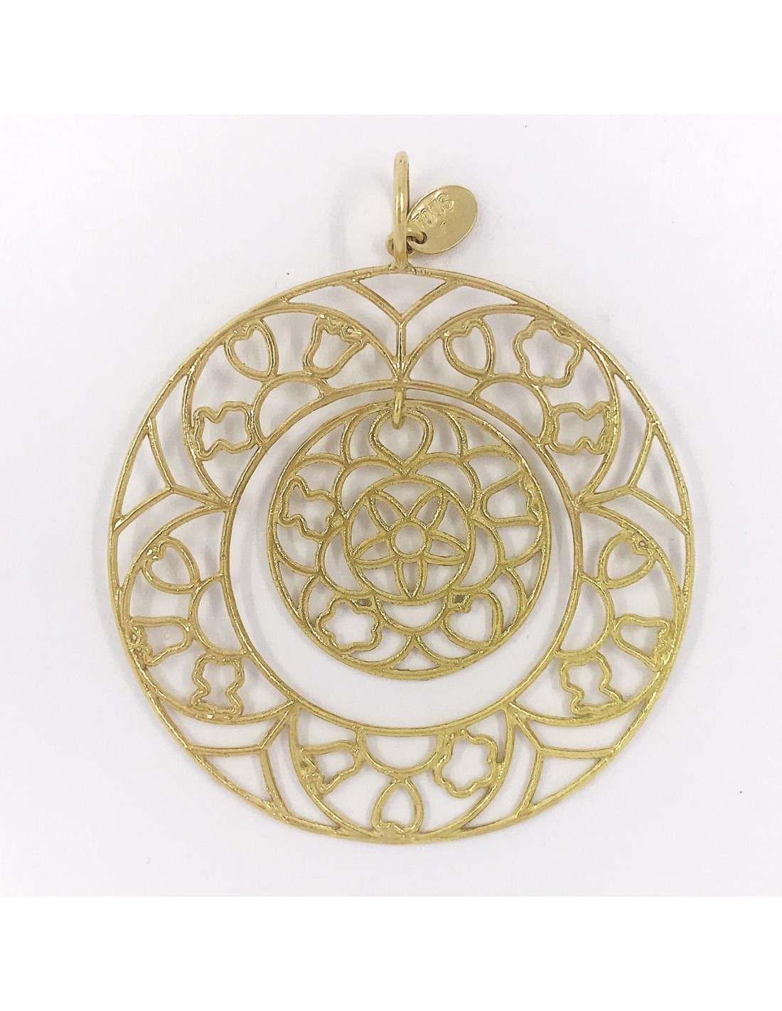 Precioso colgante TOUS de segunda mano en oro amarillo de primera ley con un magnifico acabado curricular. Diámetro: 4,5cm. Peso: 7,5gr.