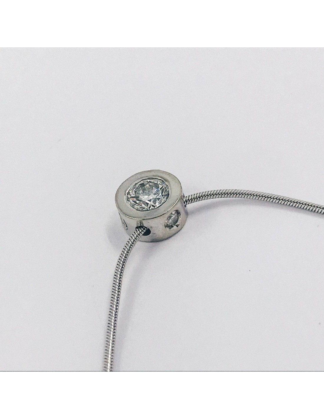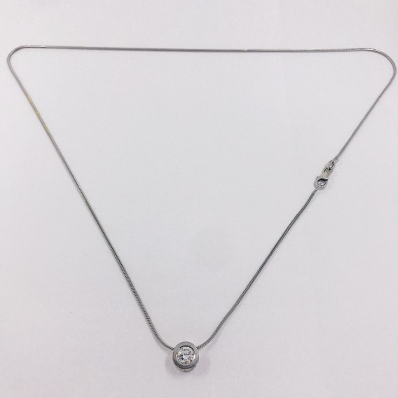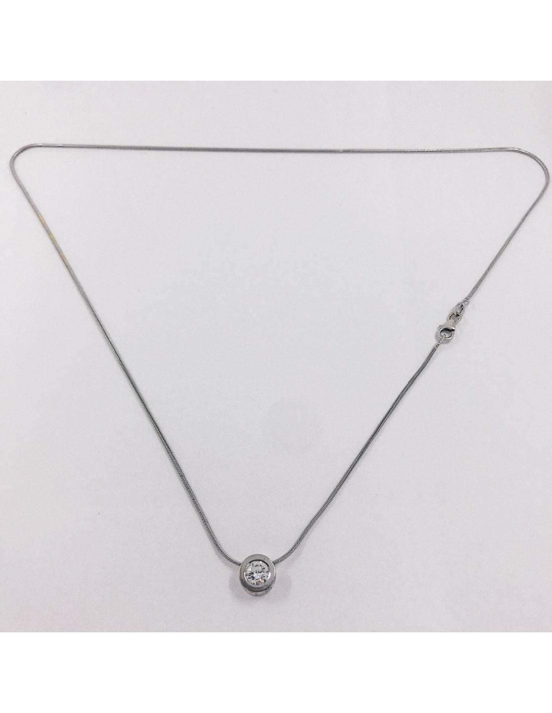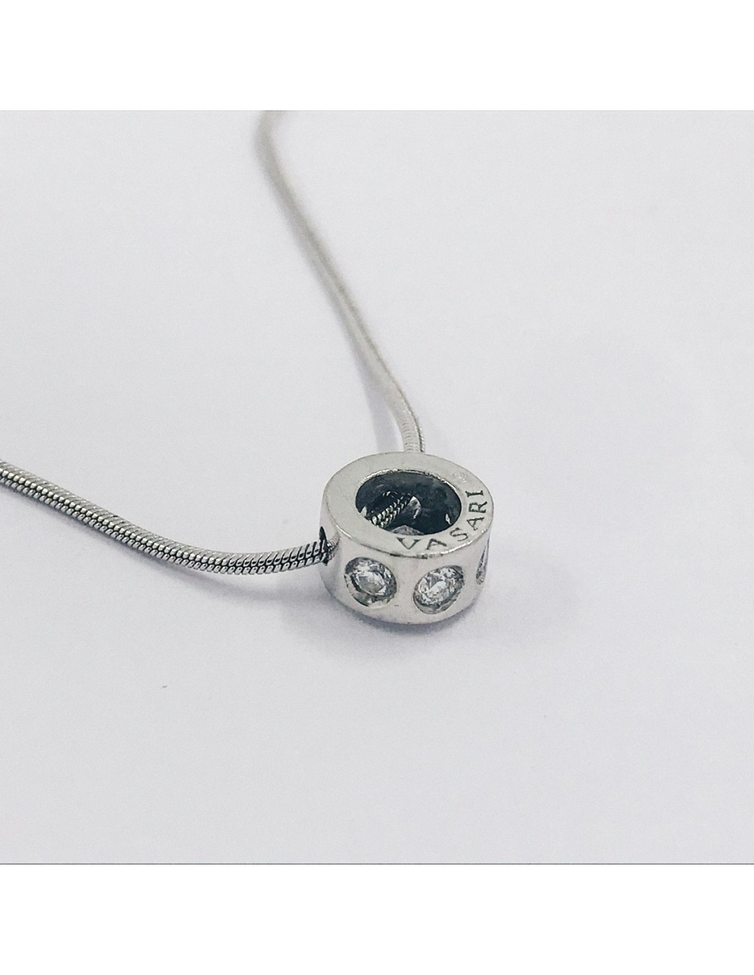 Colgante Vasari de segunda mano en oro blanco de 18 kt. y brillantes. Se acompaña de fina cadena de oro blanco. Peso total: 5,2 g. Peso brillante central: 0,50 qt. aprox. Peso brillantes laterales: 0,20 qt. aprox.