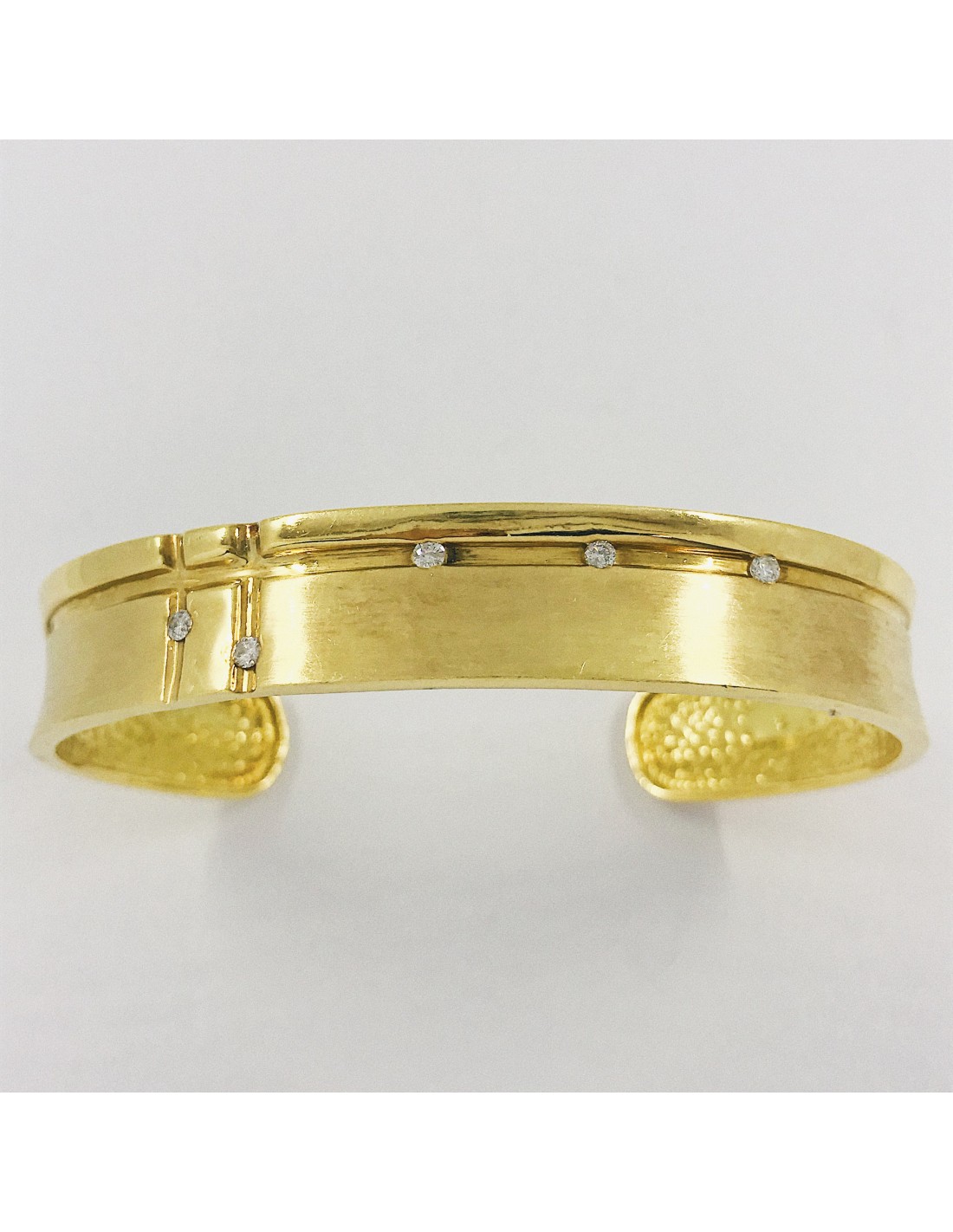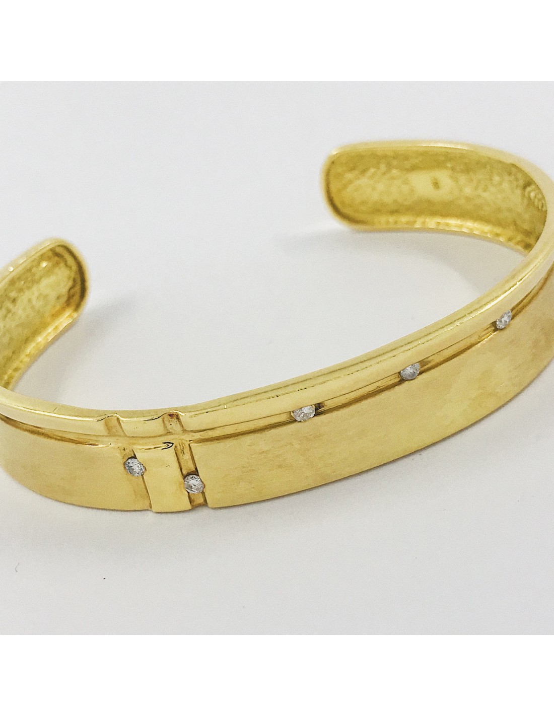 Preciosa esclava de segunda mano en oro 18kt. con brillantes. Con un magnífico diseño minimalista visualizamos la belleza en la simplicidad. Diámetro: 6cm. Peso: 22,7gr.
